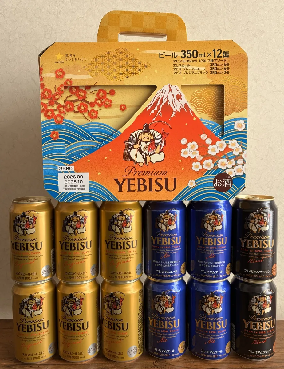 中身は金缶6本、プレミアムエール4本、黒2本の計12本。