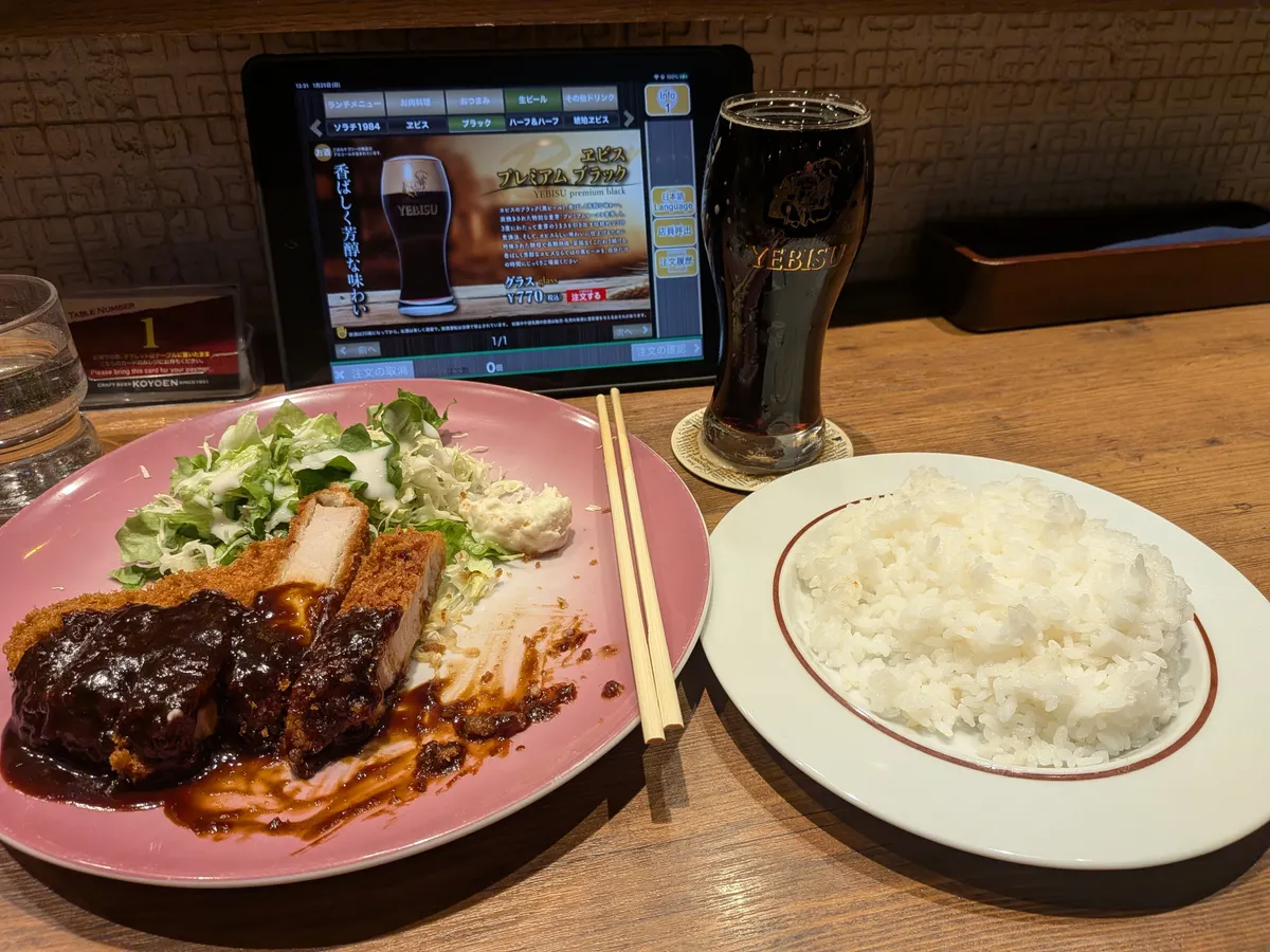 待つ間に琥珀を1杯!この料理に何のビールが合うと訊いたらプレミアムブラックが合うとのこと!😆ではではプレミアムブラックを…!🤤