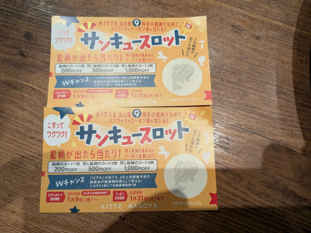 JPタワーなので1月開催しているスクラッチカードで500円引き!😏お得に…!🤗