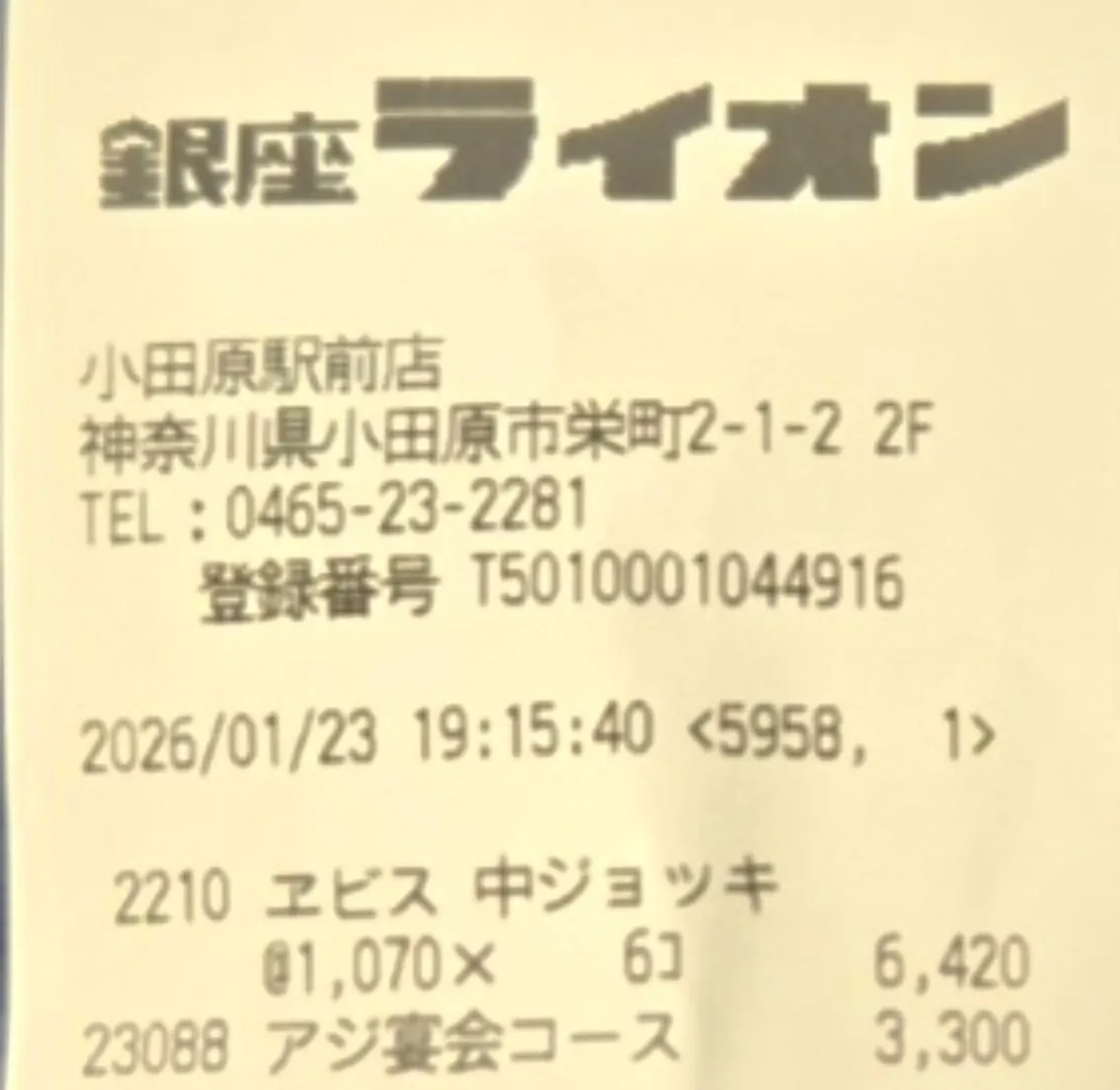 銀座ライオン小田原トザンイースト(駅前)店🦁