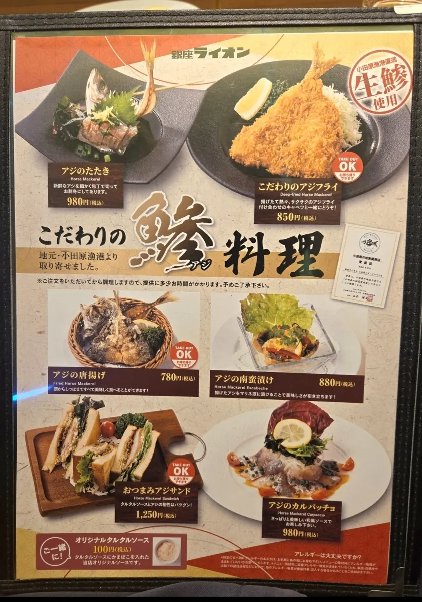 銀座7丁目店のスタッフさんからアジフライが美味しいとススメられて、いつの日か行こうと思っていました🦁