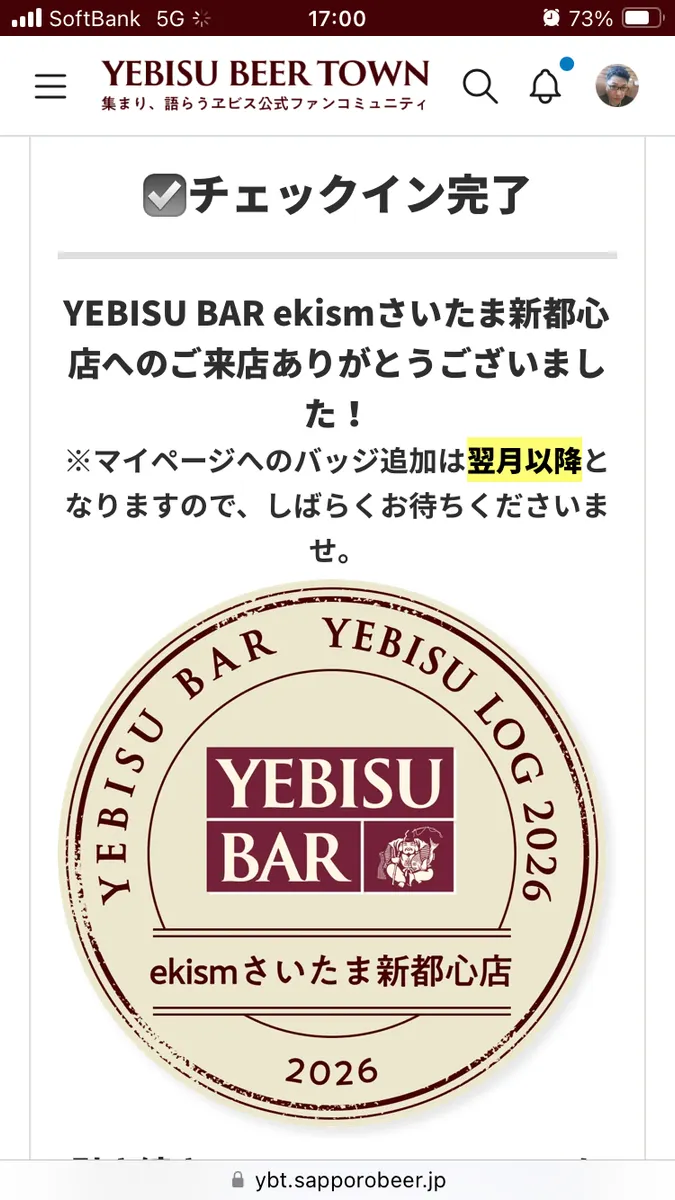 ヱビバチェックインバッジ獲得状況は、ボス(ビッグボス ヱビバアプリ全国総合2位)より遅れること昨日2/8に東京都全10店分と、本日2/9埼玉県全2店分を完遂しました。首都圏残は神奈川全3店となりましたが、近い内に昨年同様固め打ちして来ます。ヤー!!