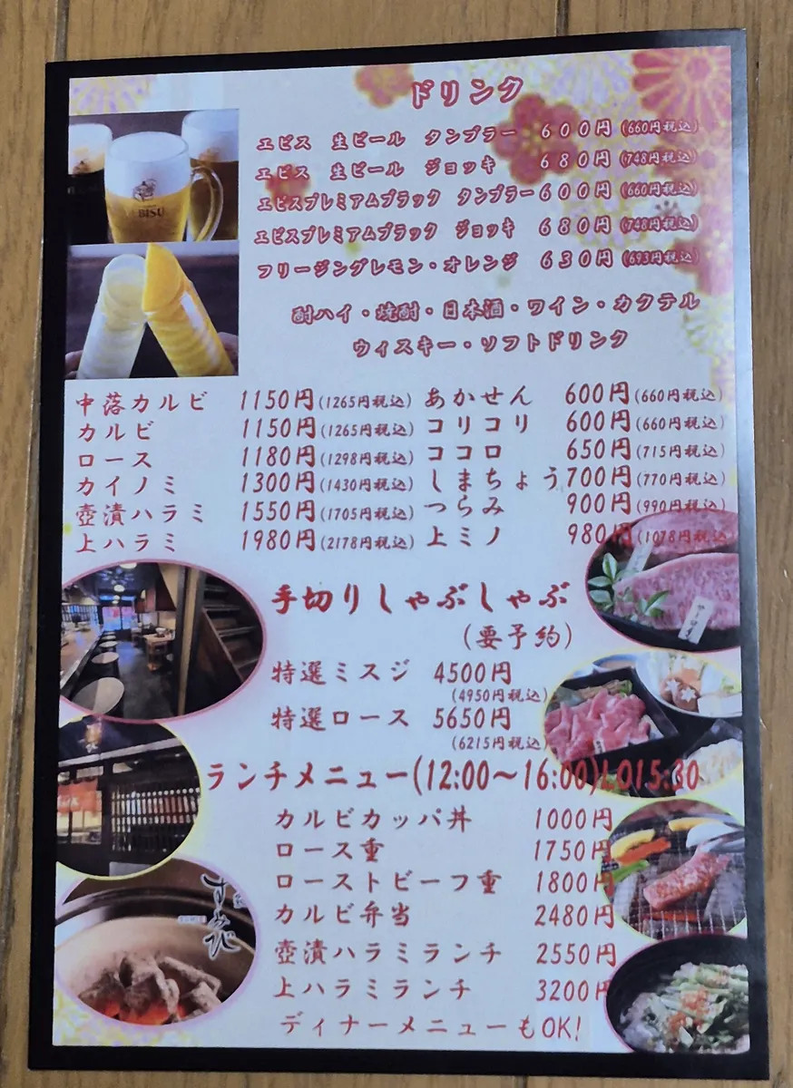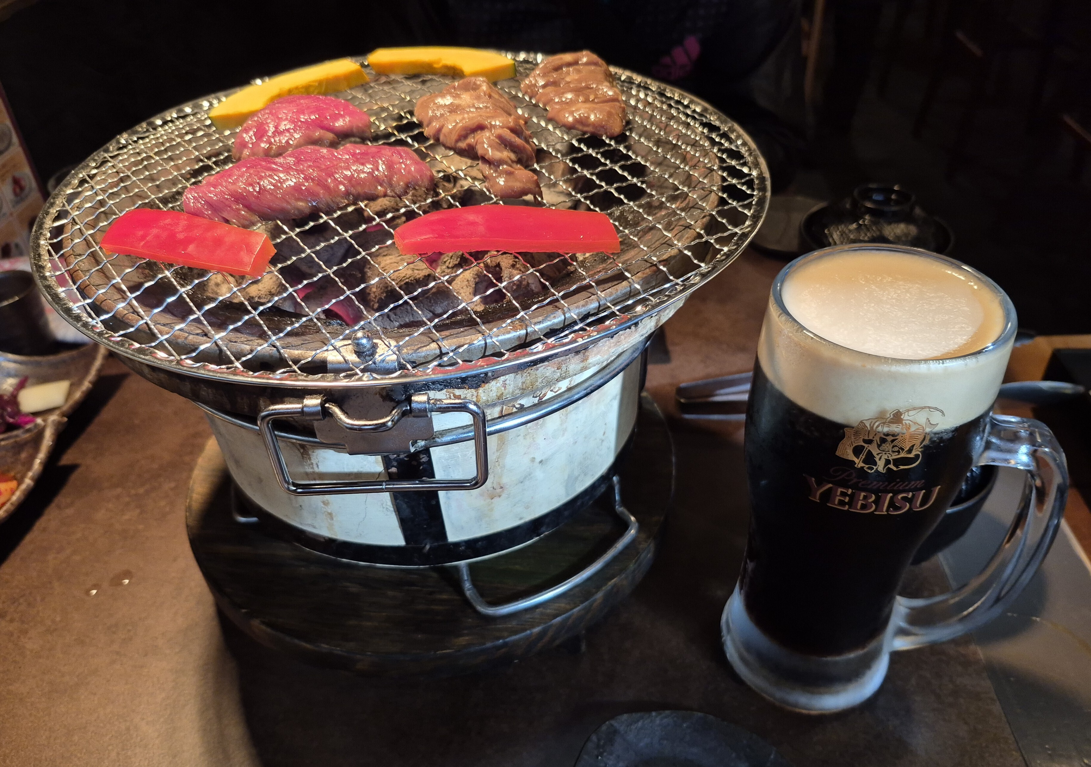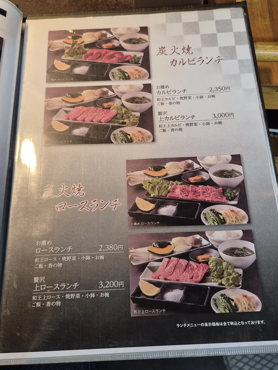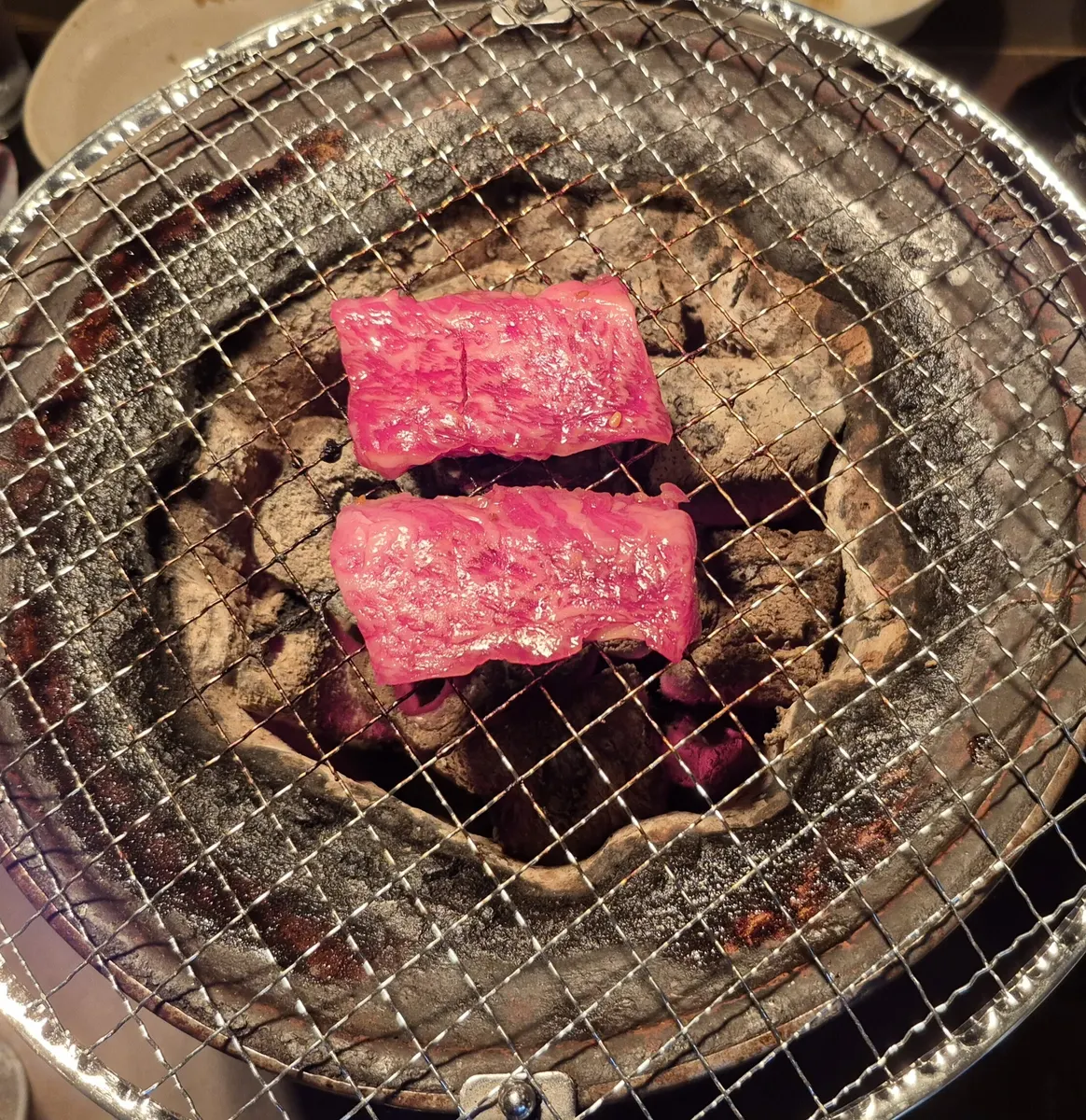 お祝いの日に行きたいお店として…。少しお高いですが,ブランド牛の炭火焼肉も良いかと思い…。今回は妻とランチタイムに伺いました。せっかく2人で伺ったので,“ペアセット(5000円)”を注文。色々なお肉を少しずつ…。やはり,ブランド牛は旨いですね。お気軽に…という訳にはいかないですが,記念日やお祝いの時にであれば,最適かと。また,ヱビス樽生ビール提供店でブラックもあります。ヱビスと共に高級焼肉♪︎~。最高ですね。まぁ~上の写真のメニューを見て頂ければですが,ブランド肉のカルビやロースが,1200円弱の値段であれば,めちゃくちゃ高いという訳ではないと思います。セットメニューや盛り合わせを頼めば,少し高いながらも,コスパ的には良いかと思います。