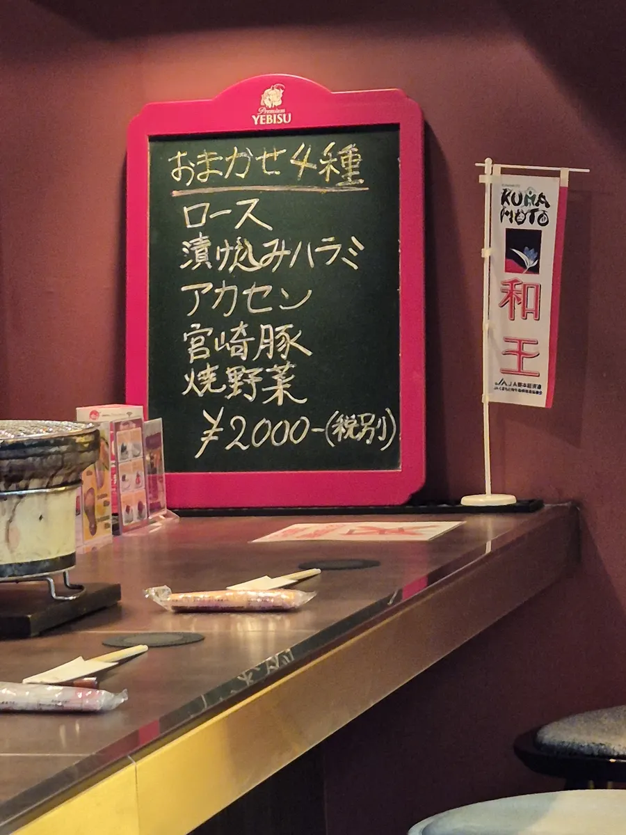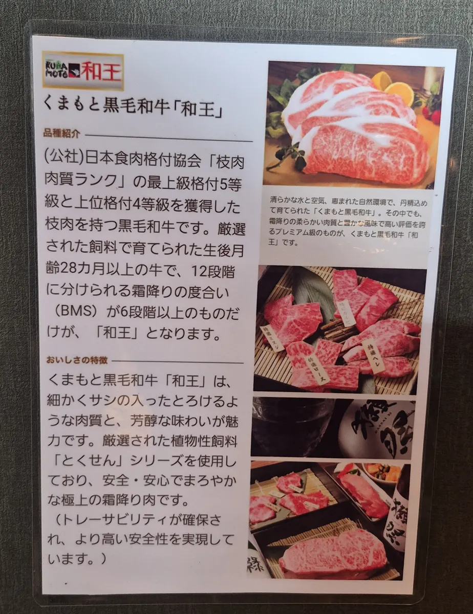 くまもと黒毛和牛「和王」の焼肉がおすすめ!…このお店の“売り”なので当たり前ですが。ヱビス樽生ビールもブラックあるのも一押しポイントです。