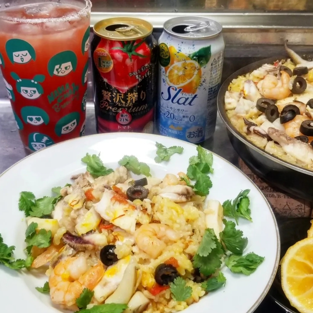 シーフードパエリアにミチェラーダ、絶対合いますね😍