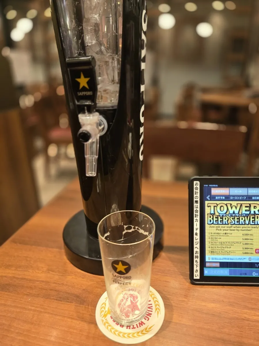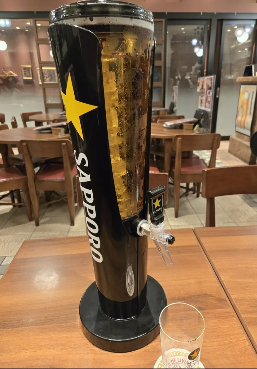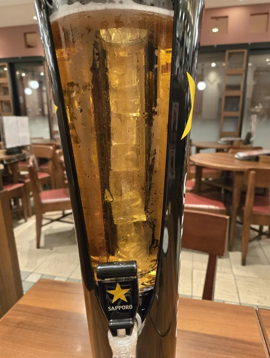 飲み干すのに1時間半くらいかかりましたけど、中央に氷を入れる筒があって、最後まで冷たいビールが飲めました🍺