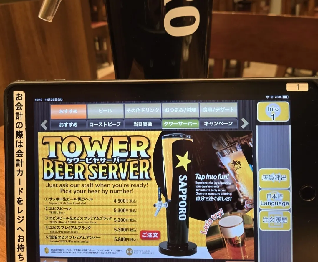 スタッフさん曰く、宴会等ではだいたいピッチャーで済ませていて、使用しているのはあまり見たことなくて、そのスタッフさんもサーバーに注ぐのは初めてだそうです😅