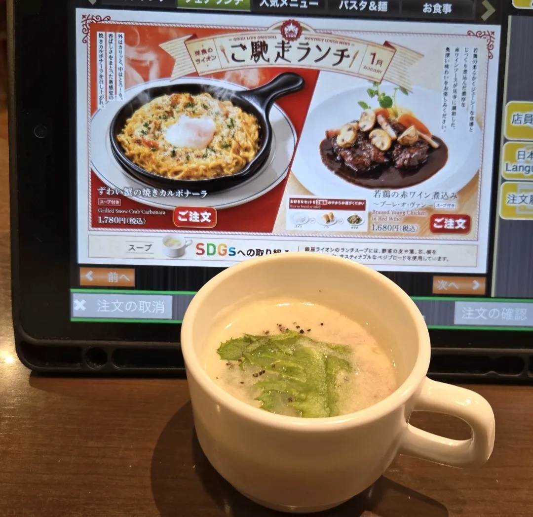 とりあえずランチメニューを注文と思い、タブレットを操作。SOLD OUTにはなっていなく、無事に注文終了。