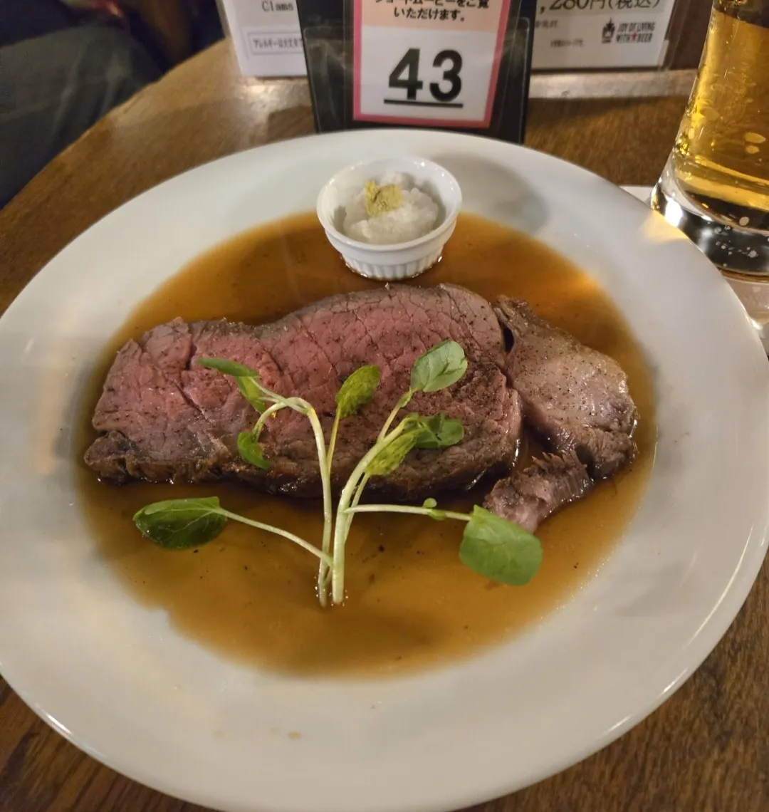 アテは料理長がホールで切り分けていたローストビーフ🐮久しぶりに和風ソースにしました😊