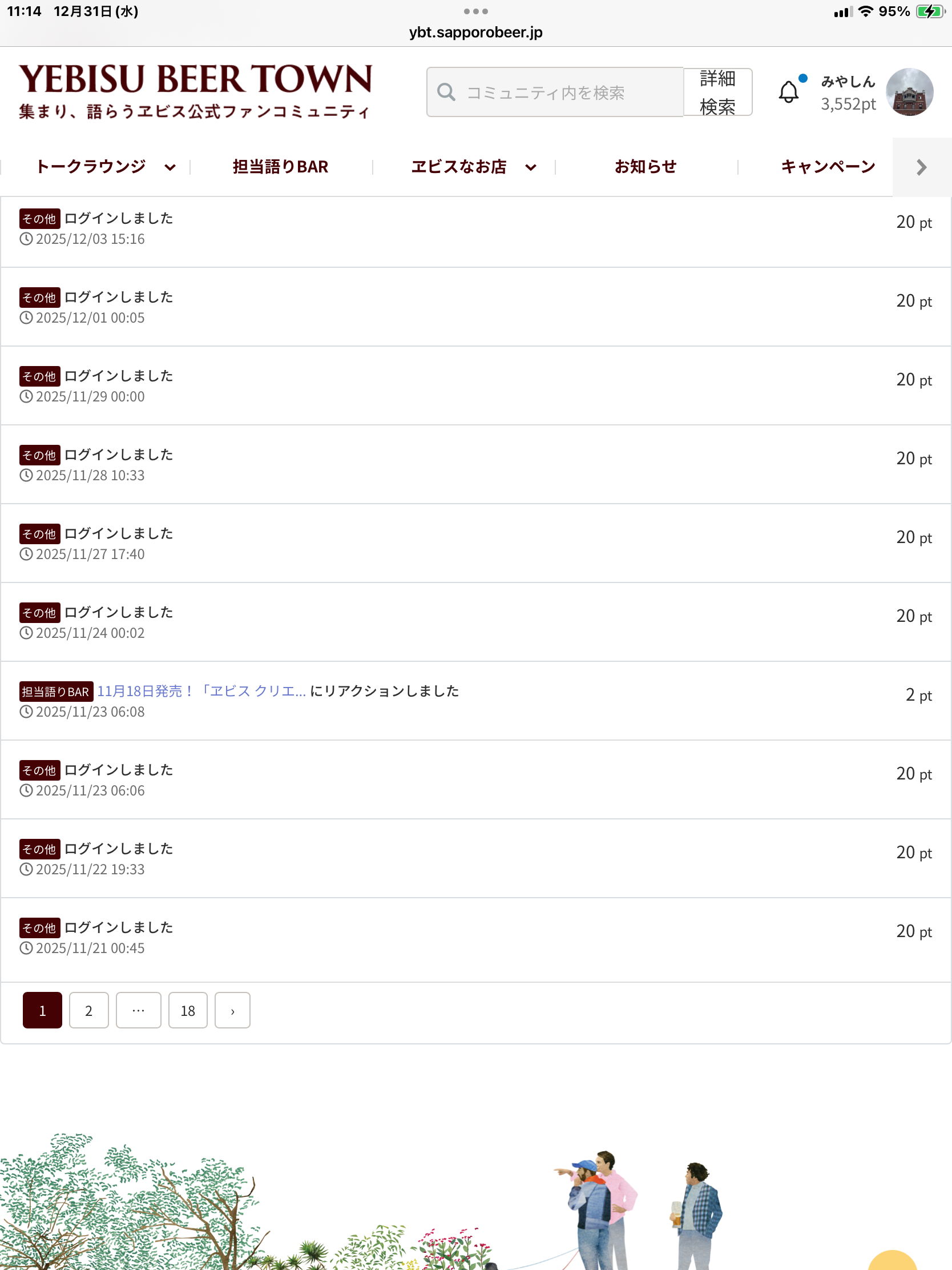 トップ > ヱビスフォト > ポイントが付かないのはなぜ みやしん 2025/12/31 11:17 ポイントが付かないのはなぜ 2025年も今日でおしまい 今年最後のYEBISUをどこでというのを 考えてますが 12月3日からポイントが付いていない ということに気が付きました ログアウトして再度ログインしても 変化なしです 困りましたねえ いいね 共有する 共有する X facebook LINE リンクをコピー コメントする 2 件の返信 (新着順) ミュートしたユーザーの投稿です。 投稿を表示 みなとみらい 2025/12/31 14:15 みやしんさん ポイントプログラムは終了しています。 来年また頑張りましょう👍 いいね 返信する ミュートしたユーザーの投稿です。 投稿を表示 むうたろう 2025/12/31 11:42 2025のプログラムが12/5に終了したからではないでしょうか。 いいね 返信する