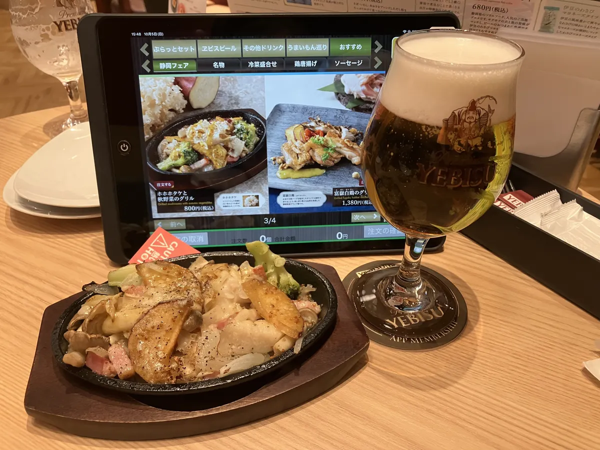 静岡フェアは「ホホホタケの秋野菜グリル」を。こちらも和奏と共に🍻✨