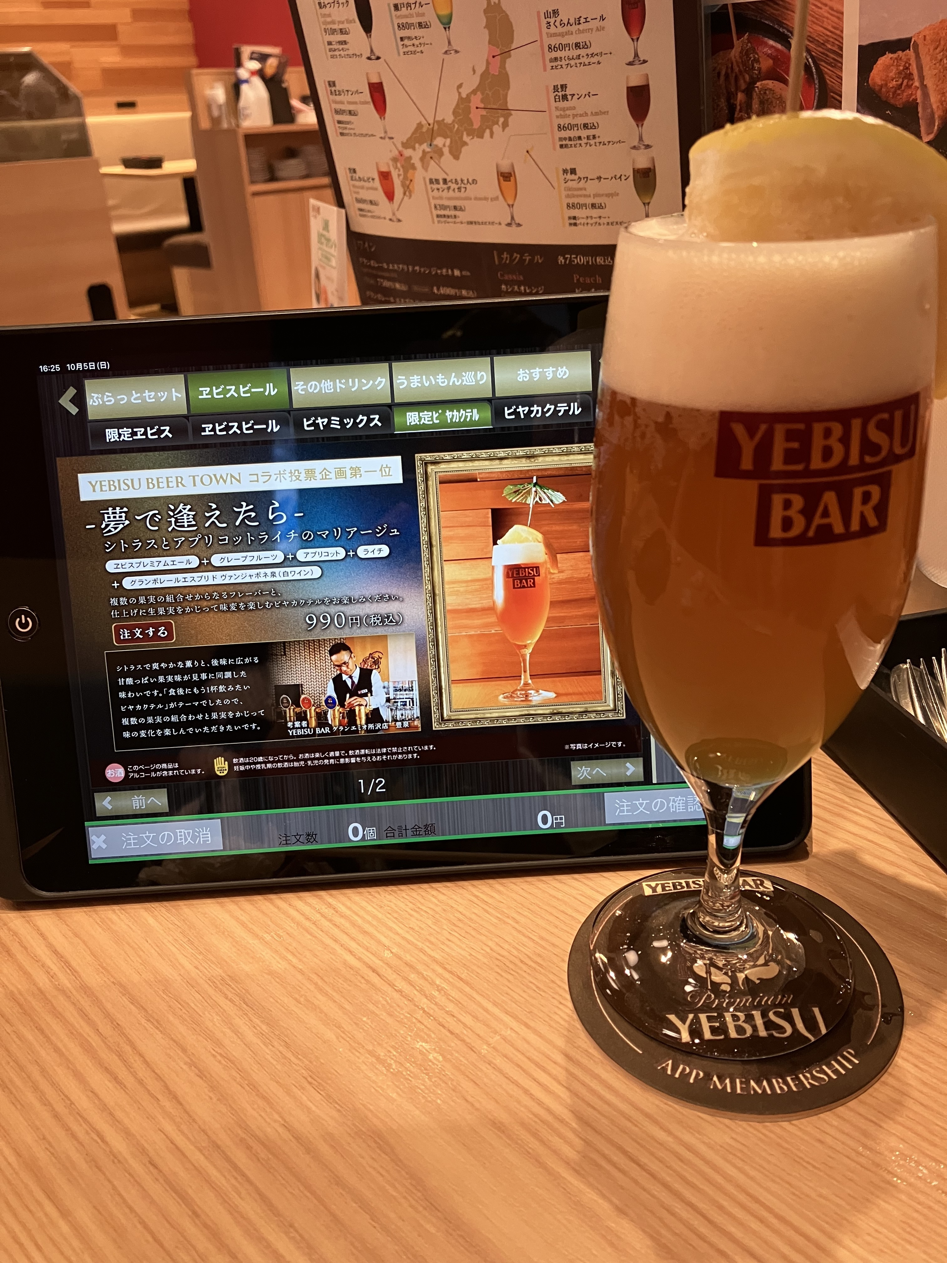 カクテル投票No.1「夢で逢えたら」飲んでみたくてYEBISUBARぶらっと京橋店行ってきました