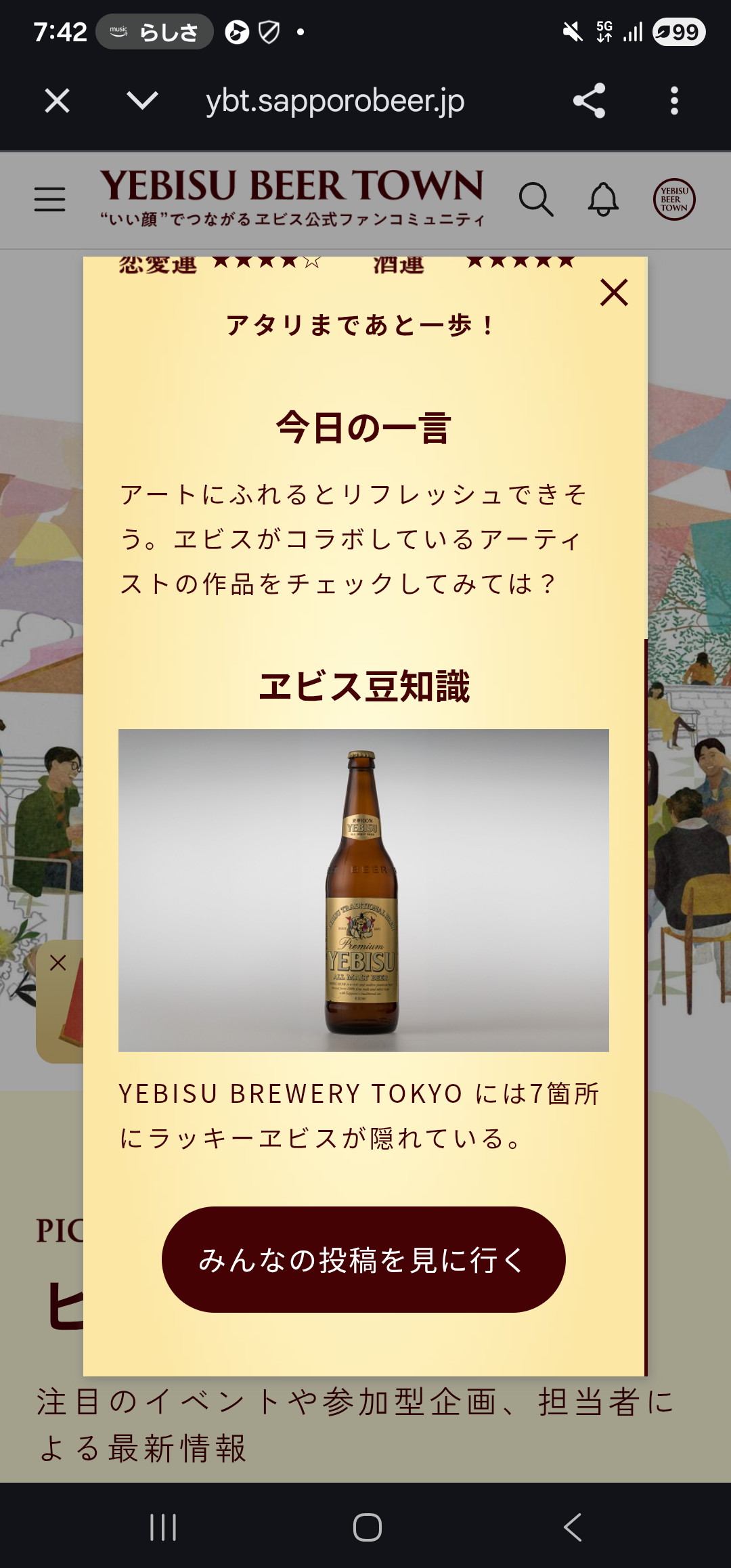 トップ > ヱビスフォト > ヱビス > 知らなかった💧 Kona 2026/03/25 07:45 知らなかった💧 ヱビスブルワリーTOKYOにかくれヱビスなんて知らなかった。かくれミッキーみたいでワクワクする(笑) いいね 共有する 共有する X facebook LINE リンクをコピー コメントする 0 件の返信 (新着順)
