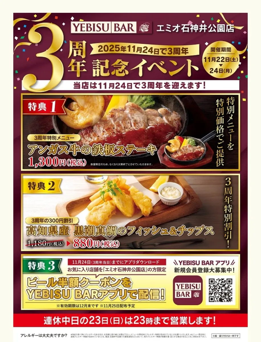トップ > ヱビスフォト > YEBISU BAR > 3周年特別価格 高知県産 黒潮真鯛のフィッシュ&チップス monaka 2025/11/24 06:20 3周年特別価格 高知県産 黒潮真鯛のフィッシュ&チップス 3周年イベント中のYEBISU BAR エミオ石神井公園店💐 特別価格の「高知県産 黒潮真鯛のフィッシュ&チップス」🐟️ 普段、鯛料理はオーダーしないのだが、、、😅 WスタンプキャンペーンのJAZZYと共に🍺 3周年イベント YEBISUBARエミオ石神井公園店 3周年特別価格 高知県産黒潮真鯛のフィッシュ&チップス JAZZY いいね 共有する 共有する X facebook LINE リンクをコピー コメントする 2 件の返信 (新着順) ミュートしたユーザーの投稿です。 投稿を表示 ちゃちゃるー 2025/11/24 09:46 おいしそー😍これは店舗限定じゃないんですかね?🤔 いいね 返信する ミュートしたユーザーの投稿です。 投稿を表示 monaka 2025/11/24 11:23 これは店舗共通のグランドメニュー🍴 3周年イベント中は300円引きの特別価格☺️ いいね 返信する ミュートしたユーザーの投稿です。 投稿を表示 元Trucker 2025/11/24 08:56 monakaさん 私も昨日梅田で食べました😋 鯛旨かったです❗️👍🍻🤤 いいね 返信する ミュートしたユーザーの投稿です。 投稿を表示 monaka 2025/11/24 09:23 元Truckerさん そうでしたか😋 普段の価格はちょっと高くなってしまい平日の日替わりランチと同じ😅 🍺のお供には良いのですが🍻 いいね 返信する