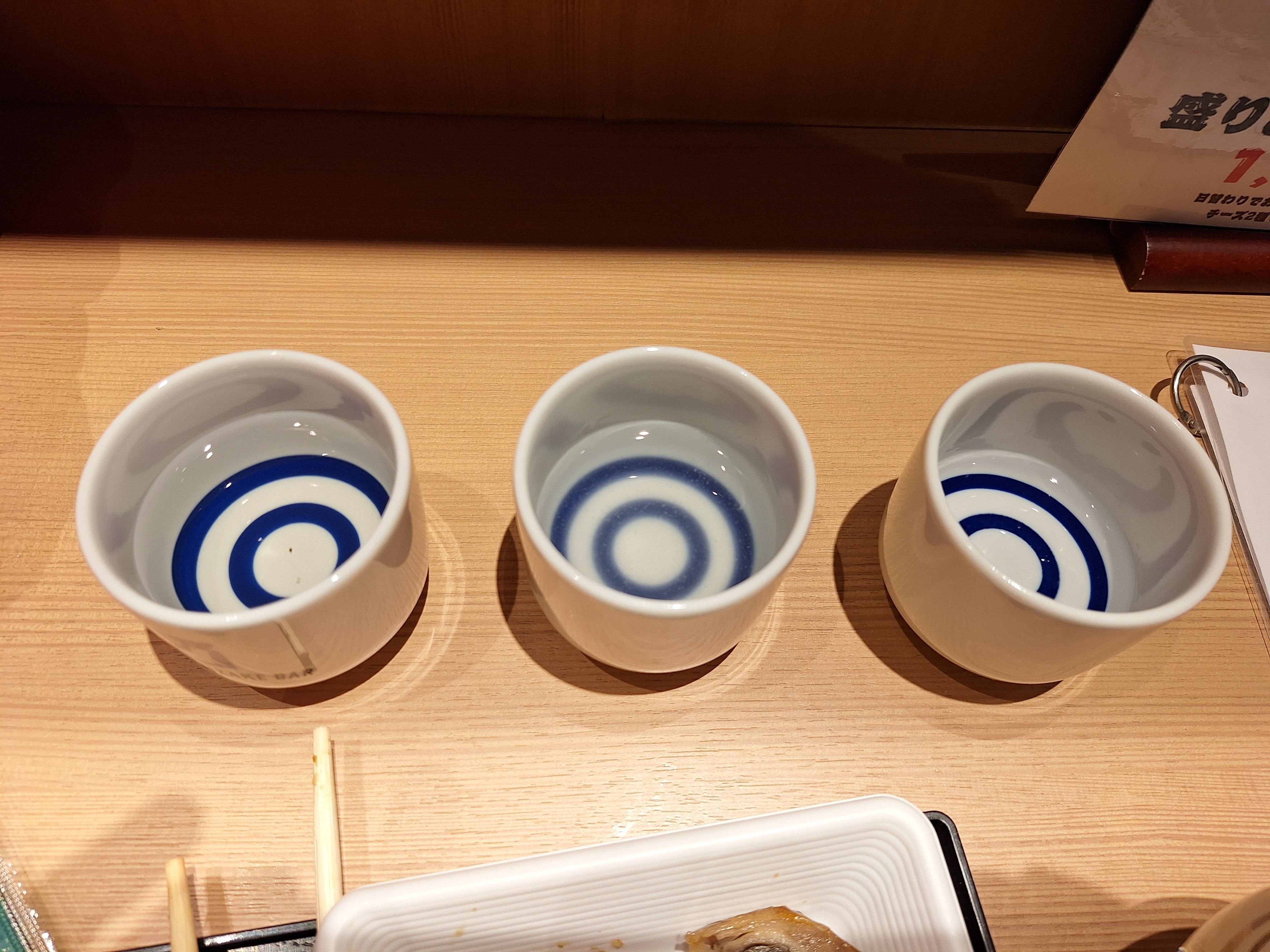 水戸駅での地酒🍶飲み比べ、お猪口で飲めて良かったですね👍