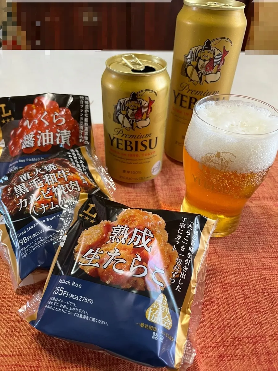 ちなみに晩ご飯前に 仕事終わりお疲れ様の昼飲み🍺で 帰りに買ってきたコンビニ🍙3個と 金ヱビス2本でお疲れ様ぁ〜 かんぱぁ〜い🍻🍻👇してました😆