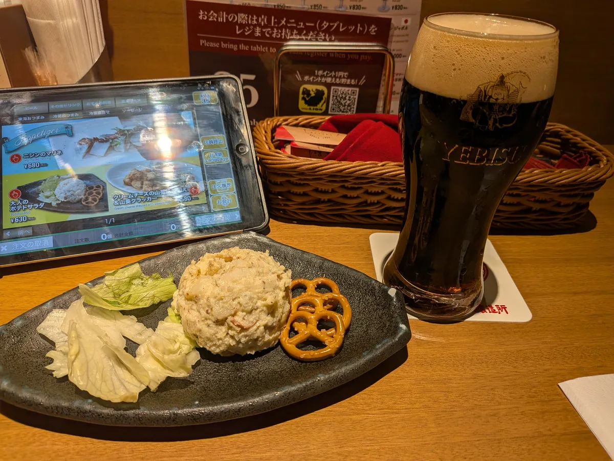 最後は大人のポテトサラダとプレミアムブラックを!😋