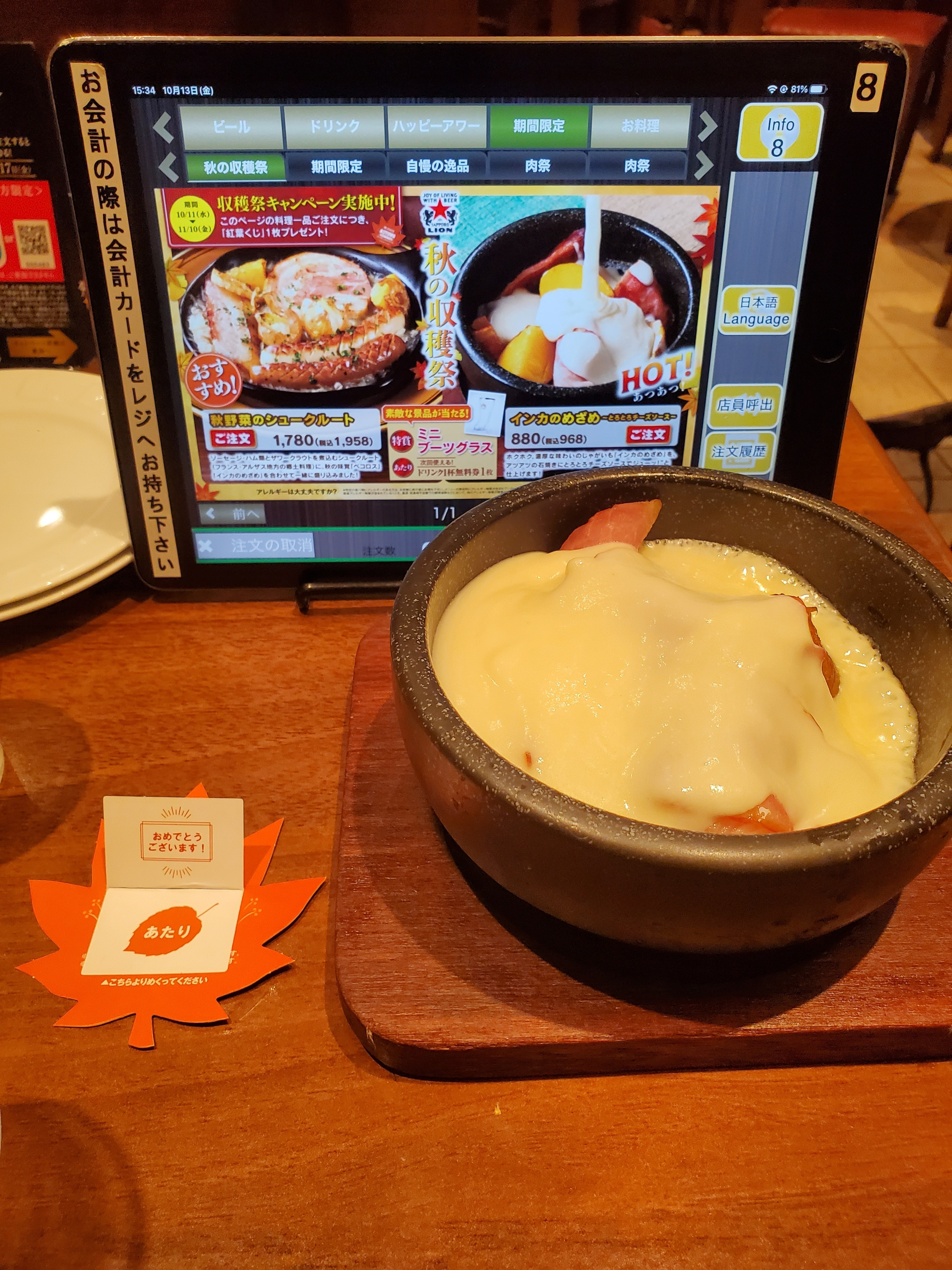 ヱビスバーだと琥珀ヱビスか午後のマロン注文でくじが引けたけど、こちらは画面の2品がくじ対象でした。