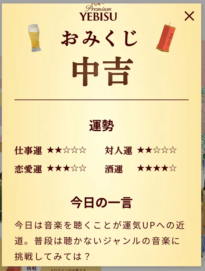 中吉でした。この「音楽を聴くことが運気UPへの近道」って、具体性無さすぎじゃないですか?