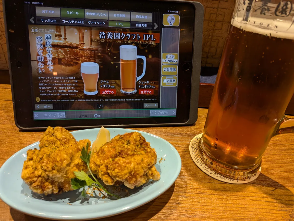 スパイシーチキンの唐揚げと浩養園クラフトIPLを!1週間の疲れがとれてゆくような…!😁