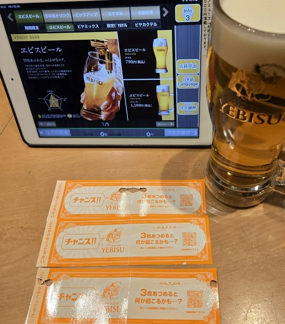 久しぶりというか今年初めていつも相手をしてくれる🔰の新人さんと遭遇。新年の挨拶をして、まだビールがグラスに半分くらい残っていたけど、おかわりをススメられる😆さすがにお断りしました😅