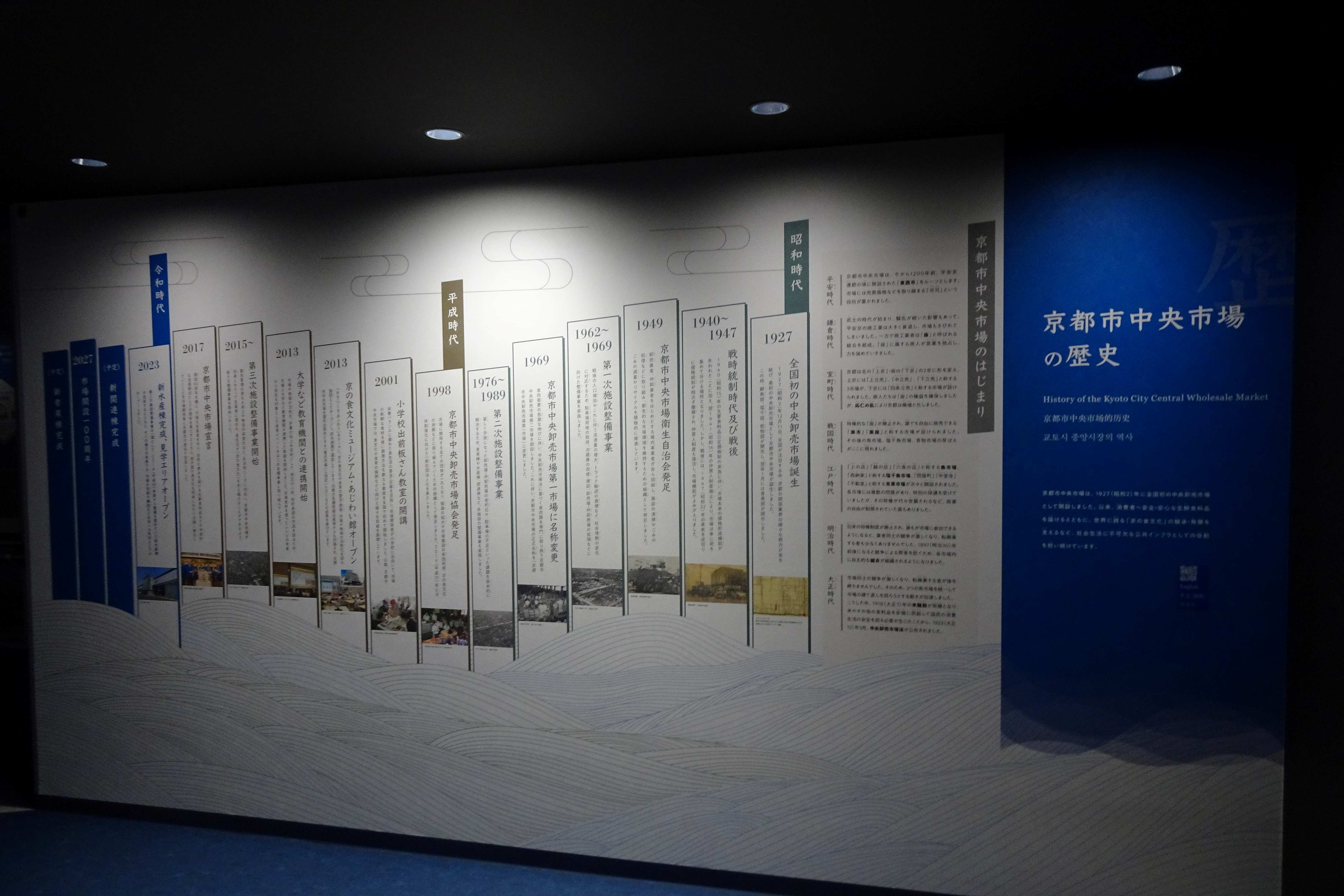 トップ > ヱビスフォト > 京都市中央市場 水産棟見学エリア なおなおっぴ 2026/03/14 23:18 京都市中央市場 水産棟見学エリア 目的地に向かう途中に中央市場があり、そこの水産棟が見学できるので、入ってみました。 案内図です。 これを見ると水産棟のすべてのエリアを上から見学できるようです。 まずはこの通路を通っていきます。 壁には色々な展示物があります。 まずは年表です。 また通路を通っていきます。 お仕事紹介です。 近海物の色々な魚の展示です。 水産棟自体は、すでに皆さん店じまいです。 いいね 共有する 共有する X facebook LINE リンクをコピー コメントする 1 件の返信 (新着順) ミュートしたユーザーの投稿です。 投稿を表示 legacy 2026/03/15 20:57 こんなところがあったんですね、へー😎👍👏。 いいね 返信する ミュートしたユーザーの投稿です。 投稿を表示 なおなおっぴ 2026/03/16 06:17 legacyさん 自分も今回知りました。 いいね 返信する