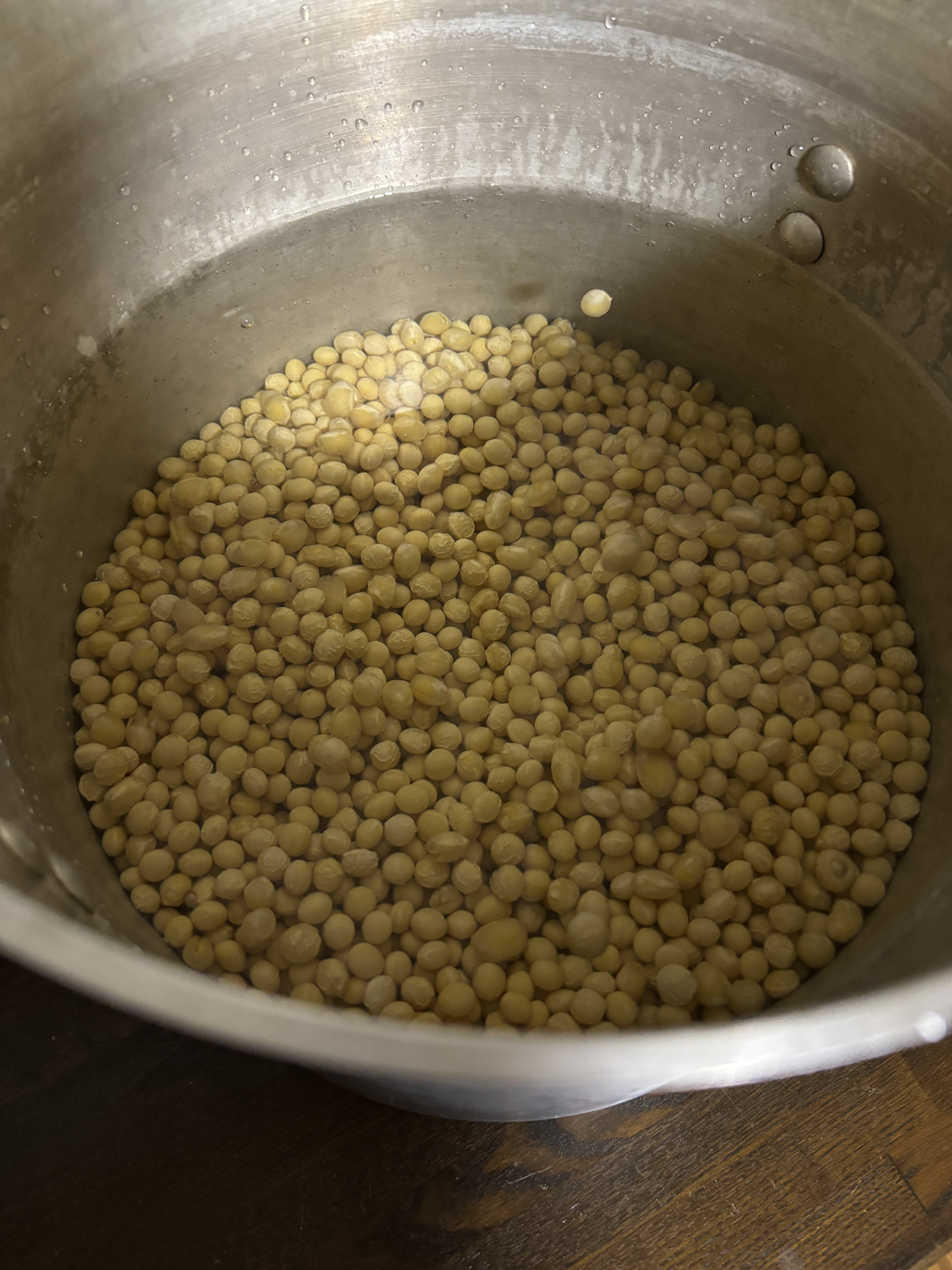アイキャッチは昨夜洗って水に漬けた大豆。