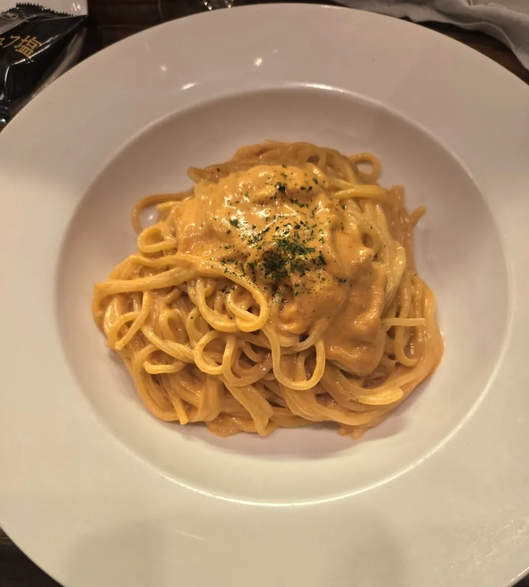 パスタはマスカルポーネのトマト味、絶対美味しいやつ。