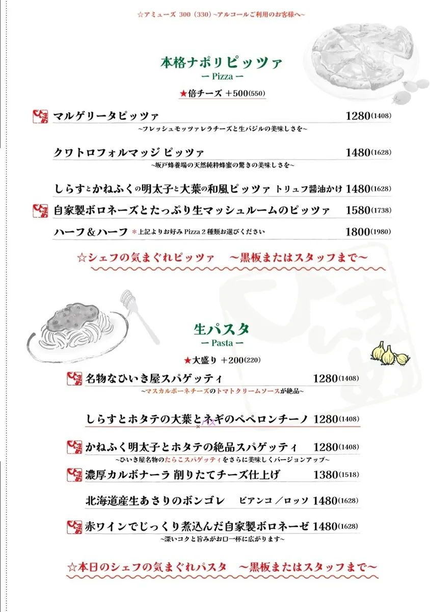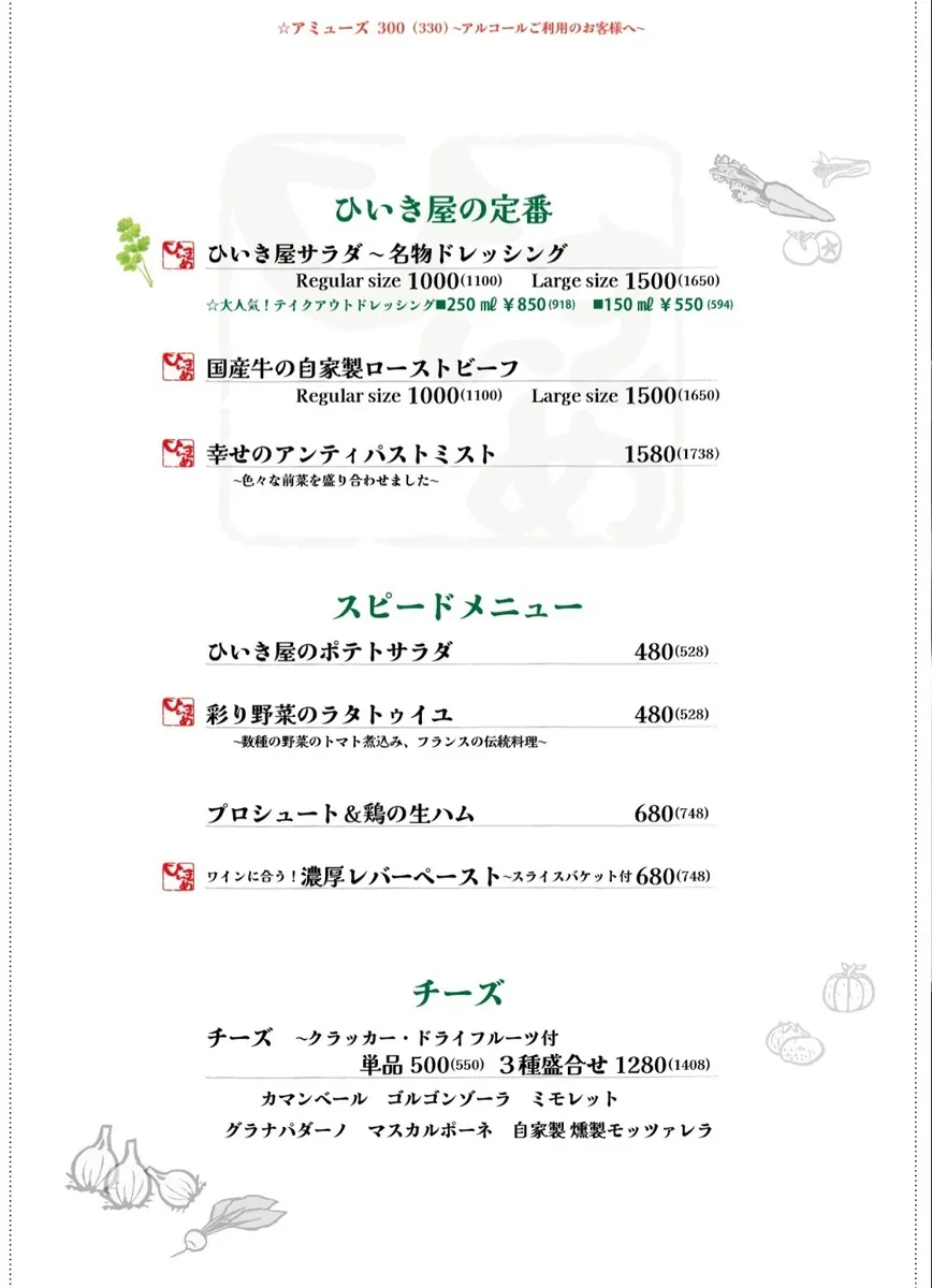グランドメニューからは最初から決めていた、ひいき屋サラダとひいき屋スパゲッティを注文。食べたことあったっけ?というレベルでの記憶のなさ🤣