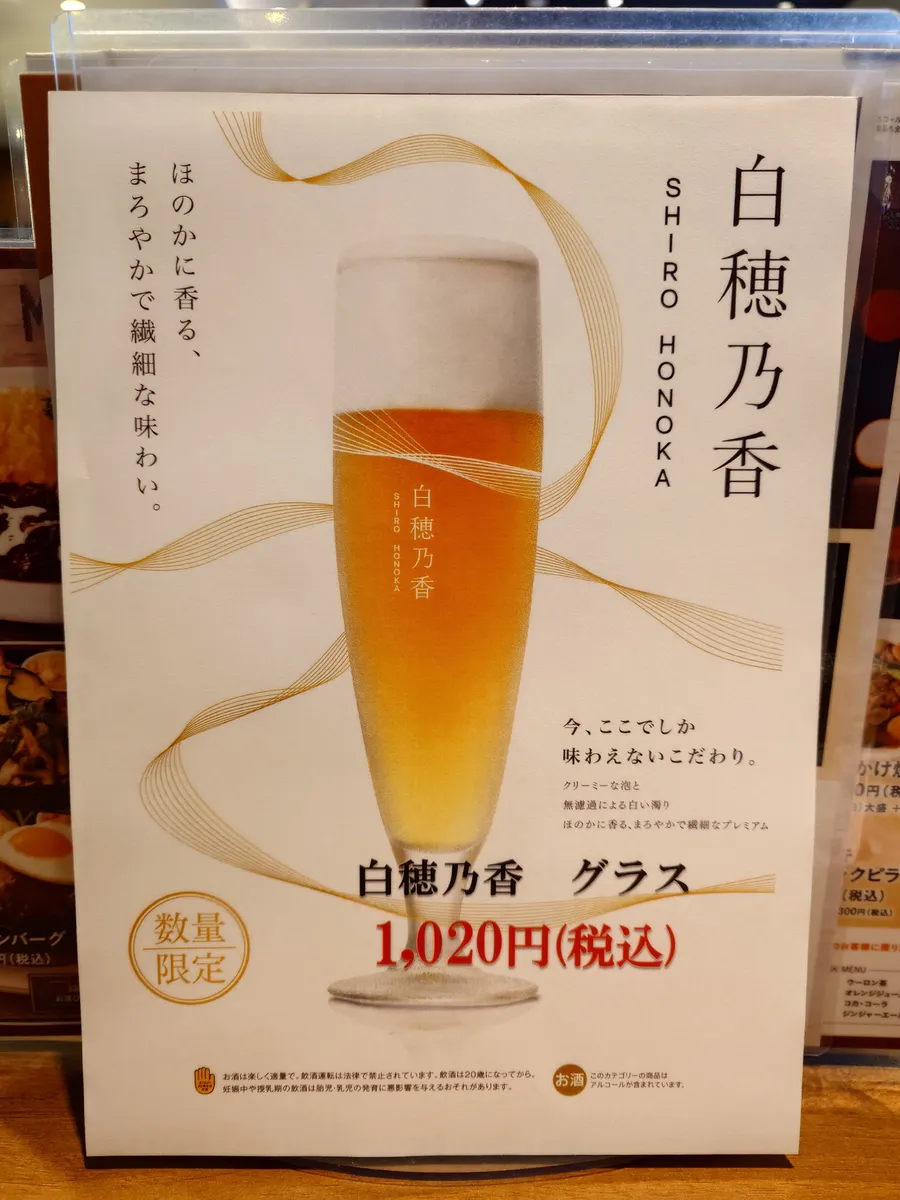 周年期間は3日間ですが、この期間は白穂乃香がゲストビールとして登場ずるので、ライオンで企画されていた琥珀ヱビスフェアで当てた無料券や半額券を、ここぞとばかりに使用して白穂乃香を注文🤭