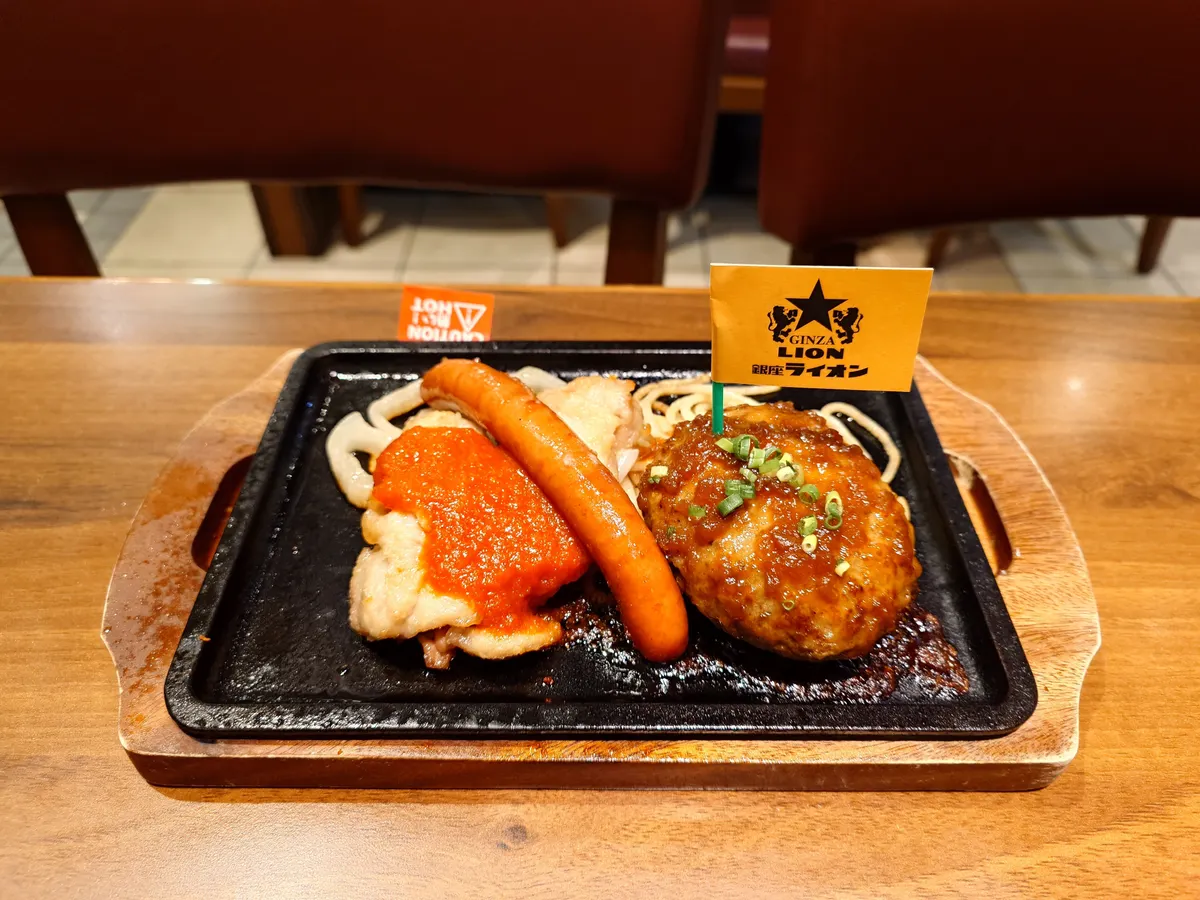ハンバーグ、ウインナー、鶏肉、パスタ、玉ねぎとボリューミーで、お腹が空いていた僕としては助かりました🤭