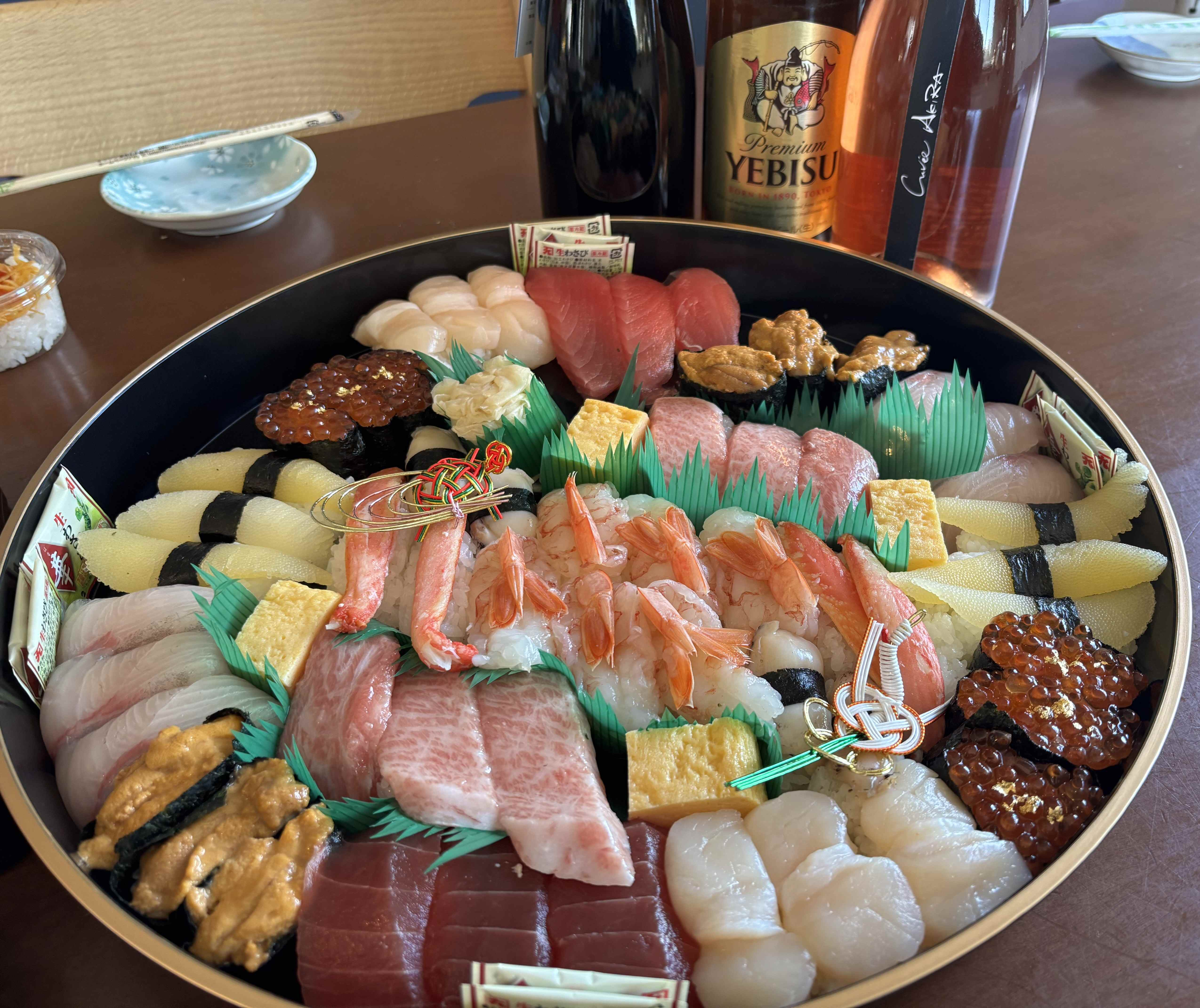 回らないお寿司も美味しそうですがさりげないラッキーヱビスはヱビス狂さんらしいですね☺️