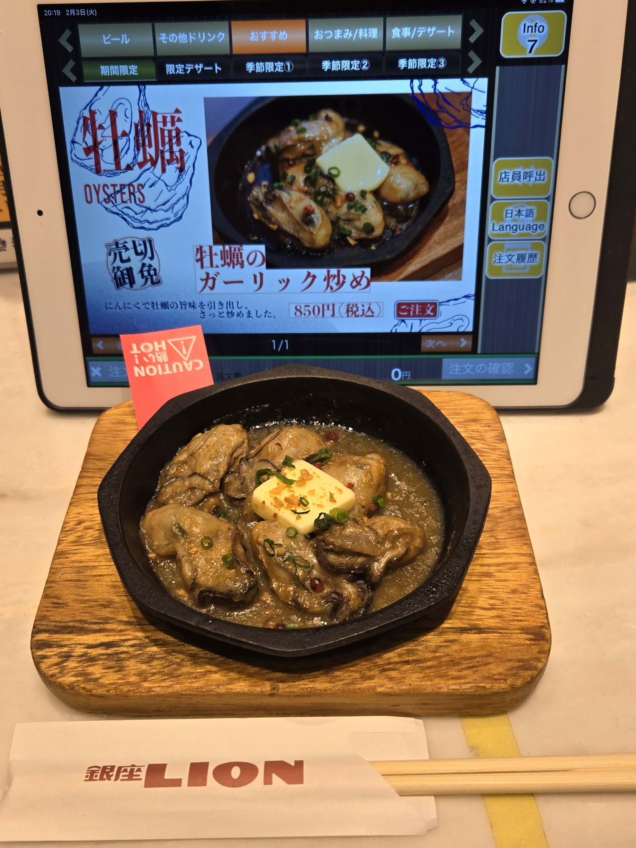 アテはトップ画像の牡蠣のガーリック炒め🦪