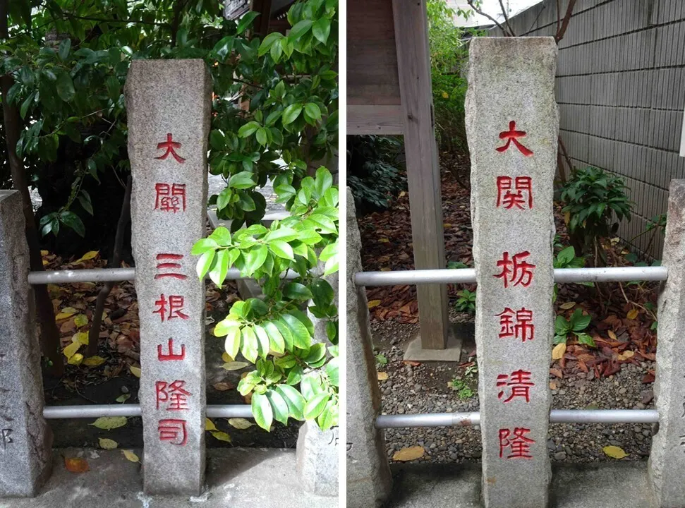 そして玉垣には今の日本相撲協会の名と、当時の横綱大関陣のしこ名がありました。