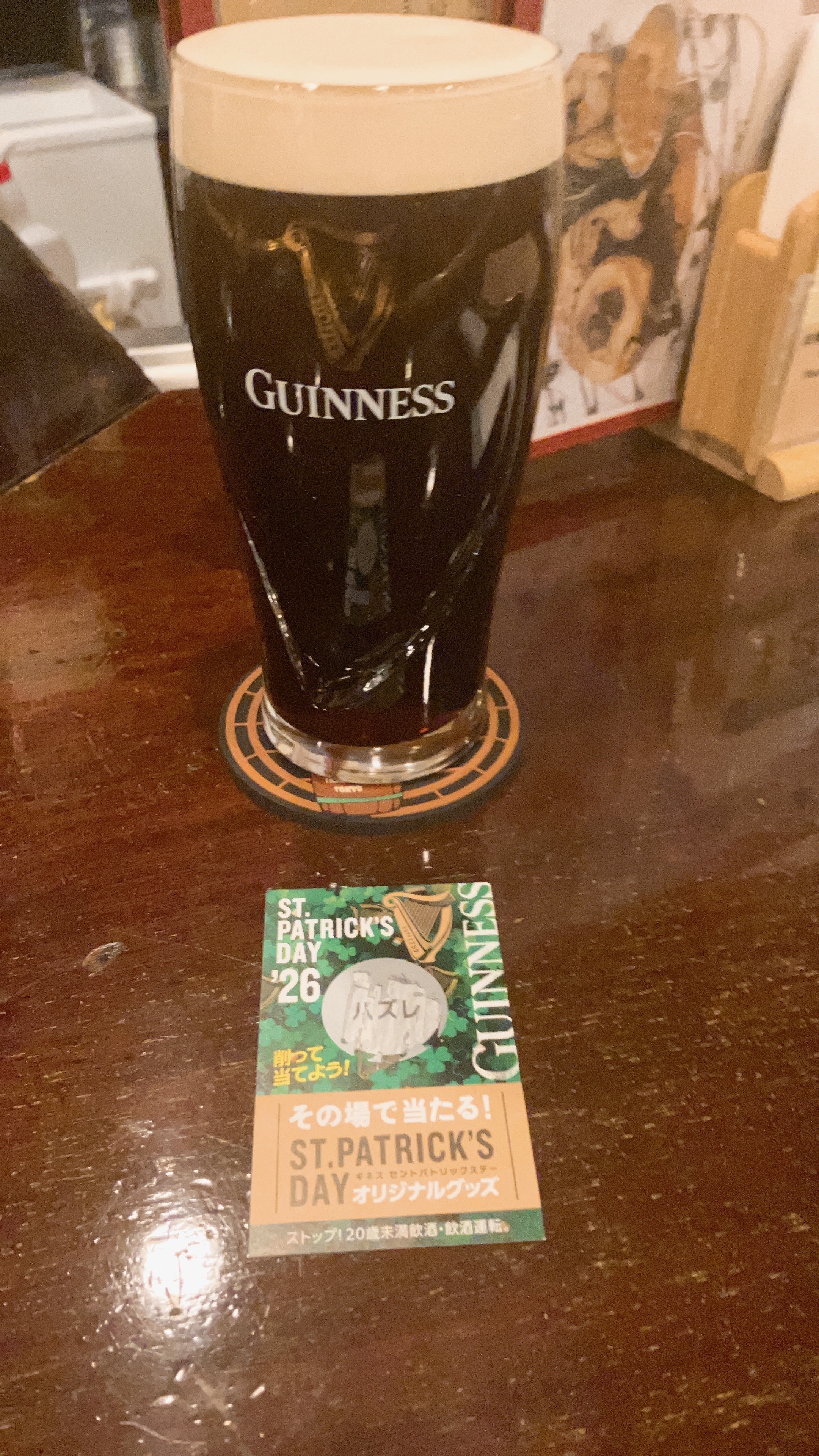 お隣の ビヤホールライオン池袋西口店からハシゴ酒。先ずはブラック&ゴールド1pnt(ギネスと黒ラベルのハーフ&ハーフ)を頂きました。アルコール度数が高い黒ラベルが下にありますが、上にある黒ラベルより度数が低いギネスとの間にギネスの泡を忍ばせているようです。時間の経過と共にギネスが降りてきて黒ラベルとミックスされました。度数が軽い方が下に来るようです。2回目でしたが絶品ですね。次はソラチを1pnt頂きました。ソラチがこれだけ飲めるのは至福の時でした。ラストオーダーはやはりギネスでしょう。1pnt頂きましたがクジはハズレでした。笑