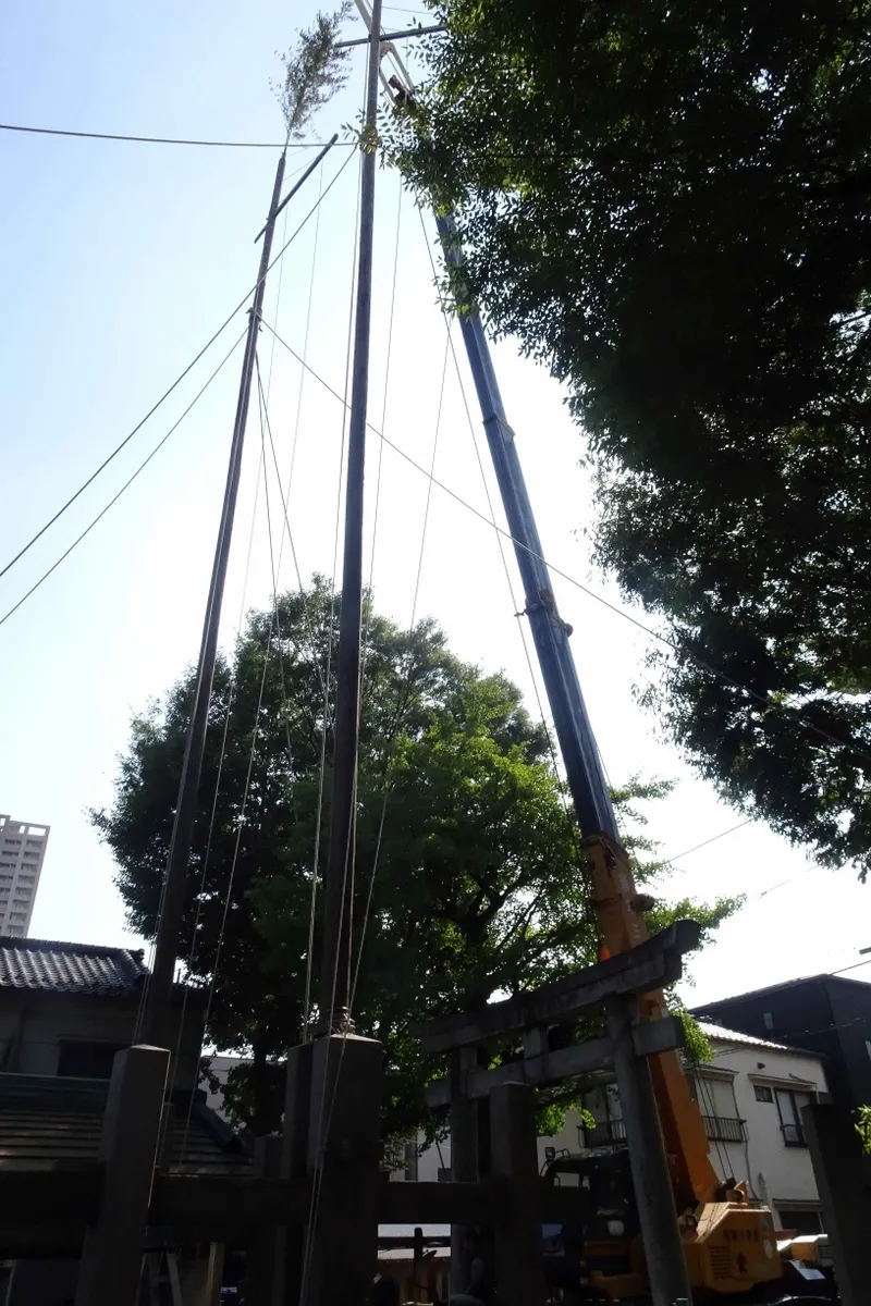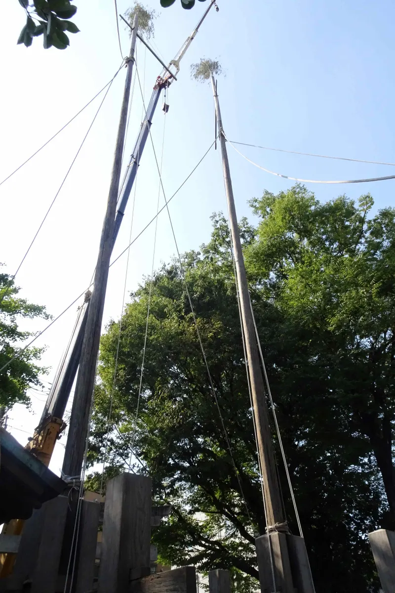 そして今立てている高い木材は幟を吊り下げる木材なのですが、町会同士の見栄の張り合いでこんなに高くなったとのことです。