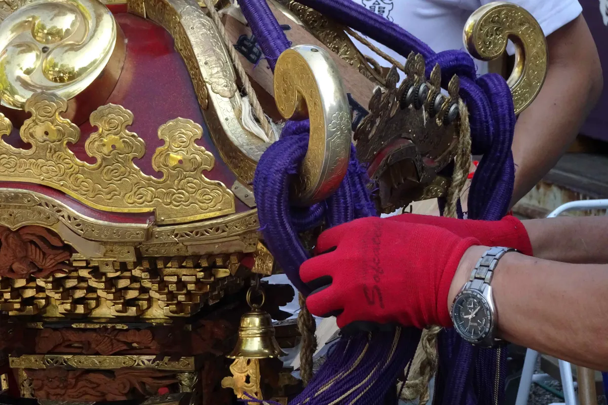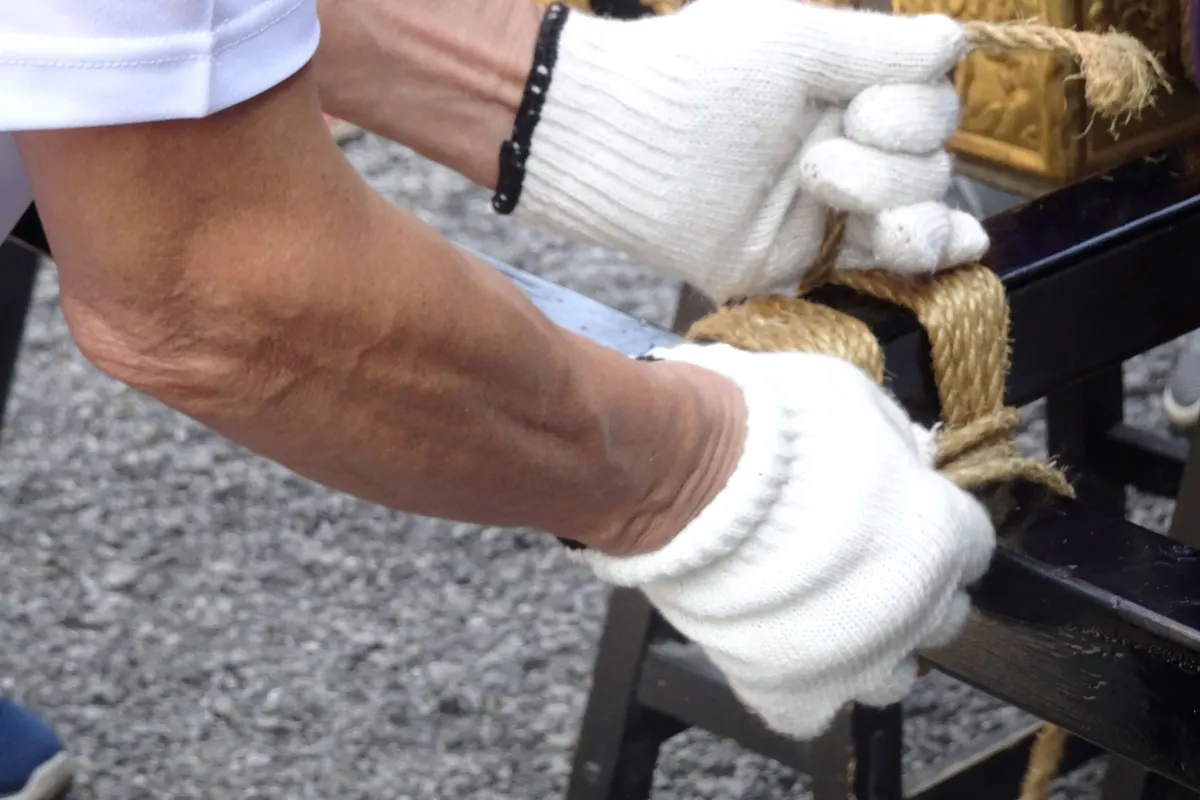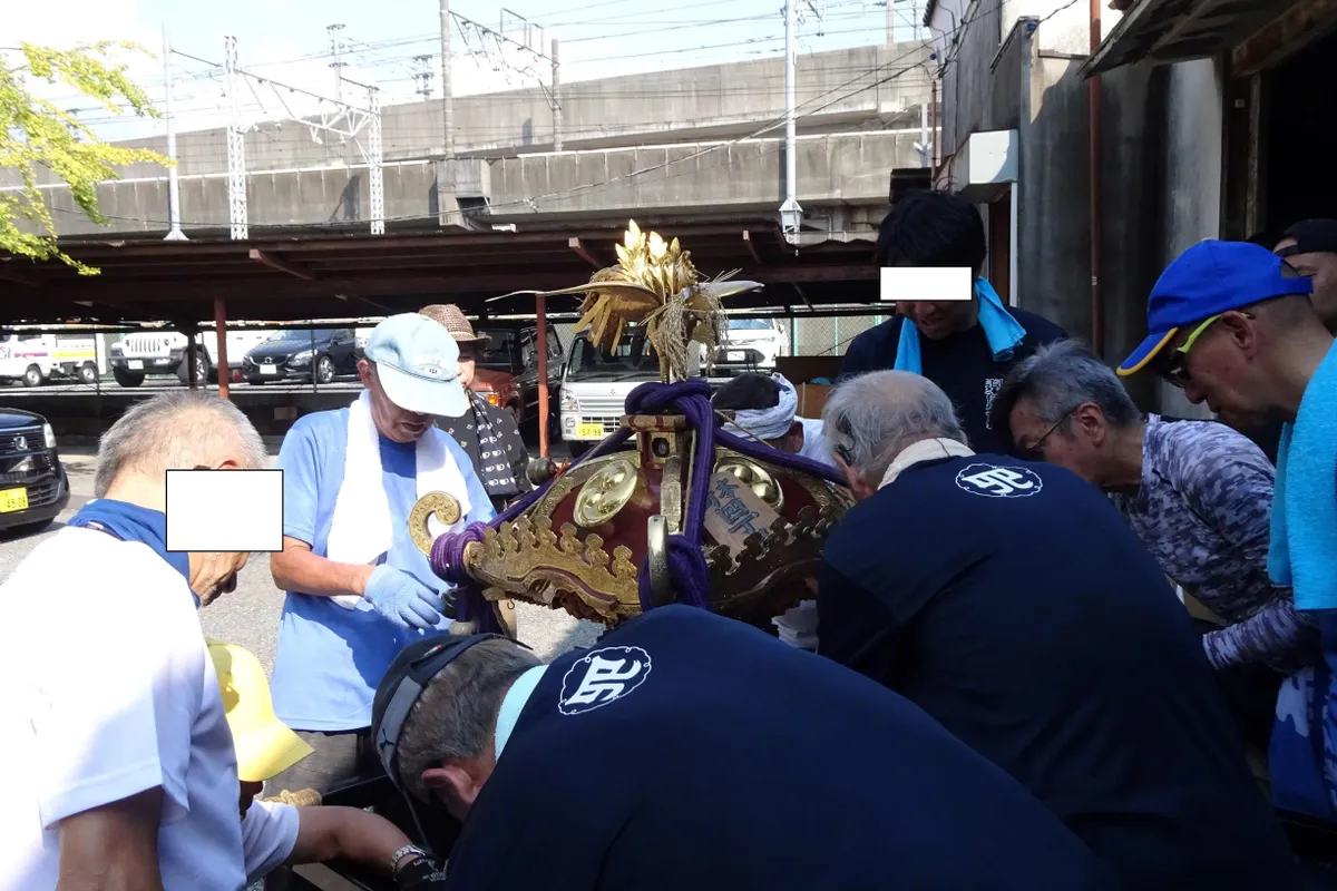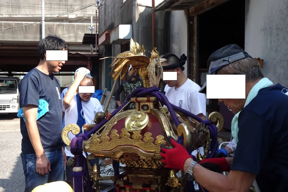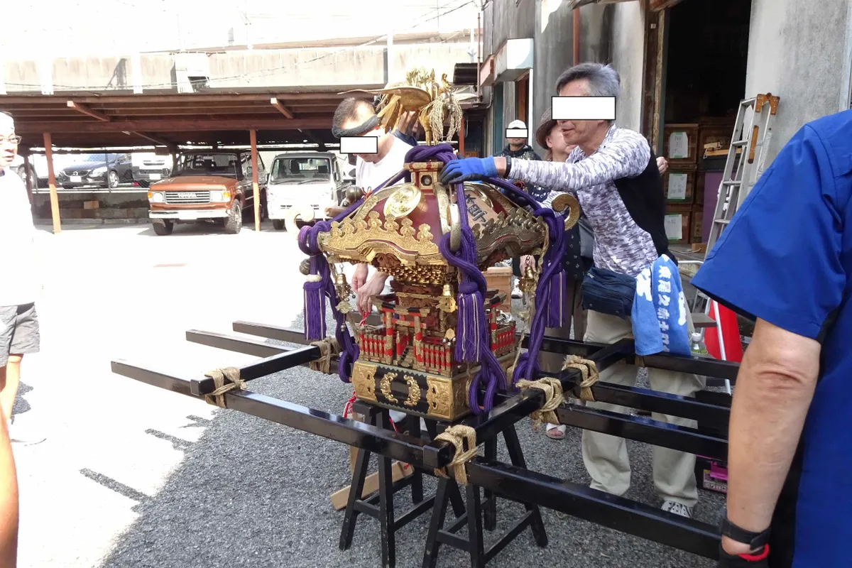 みんなして神輿を組み立てていました。