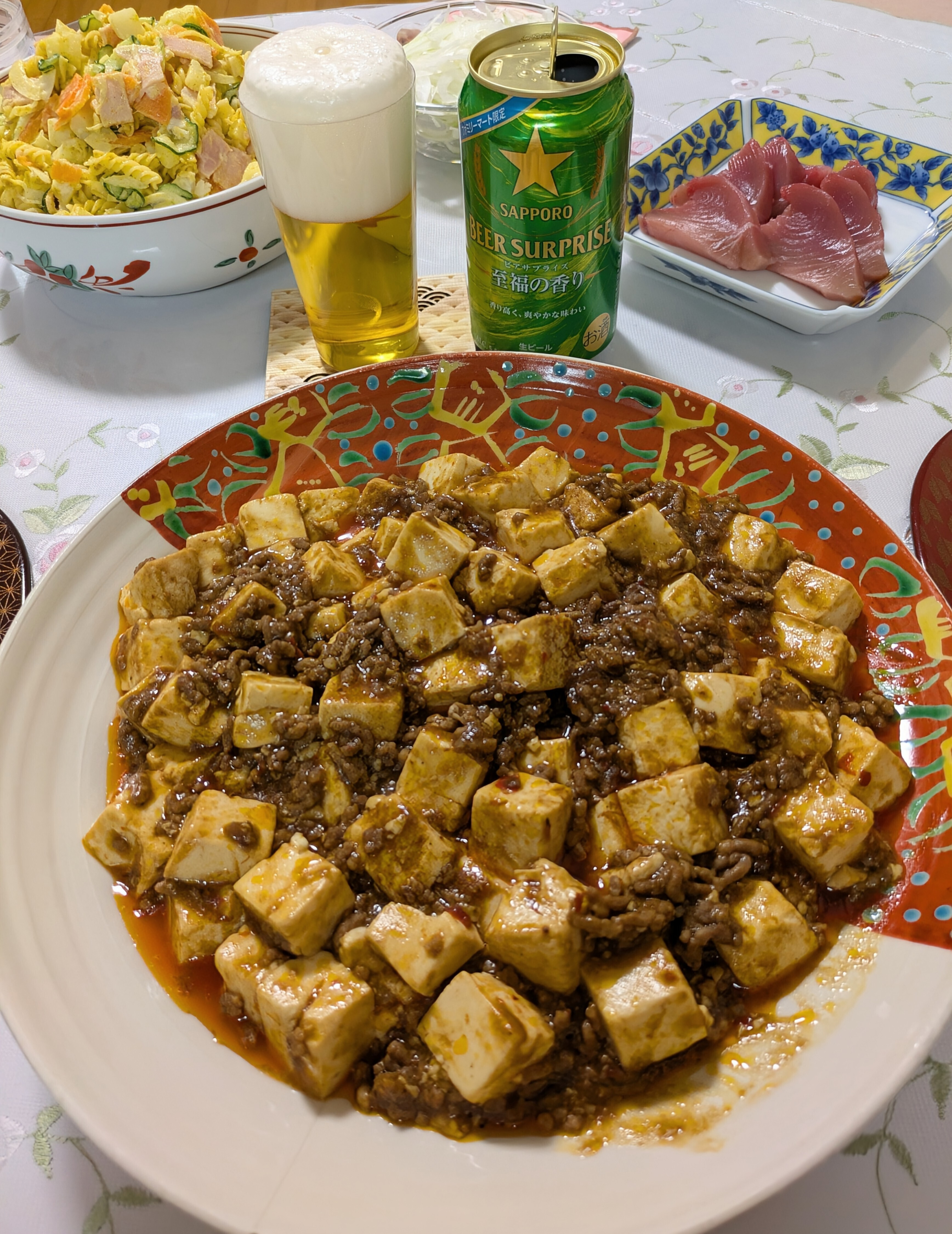 トップ > ヱビスフォト > グルメ・料理 > 至福の香り✕麻婆豆腐 マリリン 2026/03/18 07:34 至福の香り✕麻婆豆腐 我が家にもファミマ限定ビールがやって来た~ 至福の香りで乾杯🍻 恒例の月曜日の夜、後片付けをしている時に 明日は何にしようかね~ 「久しぶりに麻婆豆腐食べたいな~。あ、あとは春巻きとか」 ⋯⋯麻婆豆腐でお願いします 「いいよ~」 と言うことで麻婆豆腐に決まりました 笑 麻婆豆腐、マカロニサラダ、よこわ造りをいただきました 美味しかったです ご馳走さまでした🙏 至福の香り 麻婆豆腐 マカロニサラダ よこわ造り 辨天娘荒走り 天狗舞 能登の復興応援、つなぐ石川の酒 このお酒は能登の仲間を助けるために、石川県の蔵元が一致団結して販売する日本酒です。1本あたり100円を石川県、100円を石川県酒造組合連合会の義援金に寄付します。ラベル裏より いいね 共有する 共有する X facebook LINE リンクをコピー コメントする 4 件の返信 (新着順) ミュートしたユーザーの投稿です。 投稿を表示 legacy 2026/03/18 17:38 麻婆豆腐、俺も食べたいです😎👍👏👏👏。 いいね 返信する ミュートしたユーザーの投稿です。 投稿を表示 にいたん 2026/03/18 17:32 マリリンさん こんにちは☔ きれいなよこわお造りおいしそう😋 麻婆豆腐褒めろよって言われそうですが😅 今日は久しぶりにカレーをつくりました😊 いいね 返信する ミュートしたユーザーの投稿です。 投稿を表示 もとをば 2026/03/18 09:38 麻婆豆腐🌶️‼️😋👍 美味しそう~🎵 至福の香り🌟🍺も買いに行かなきゃ❗ いいね 返信する ミュートしたユーザーの投稿です。 投稿を表示 マリリン 2026/03/18 16:15 もとをばさん、こんにちは ありがとうございます😊 至福の香り、楽しまれてください🍻✨😆🙌 いいね 返信する ミュートしたユーザーの投稿です。 投稿を表示 rainbow🌈 2026/03/18 08:08 美味しそうな麻婆豆腐ですね😋😋😋😋😋 お皿のチョイスも良い感じでより美味しそうに見えます👏 いいね 返信する ミュートしたユーザーの投稿です。 投稿を表示 マリリン 2026/03/18 16:14 rainbow🌈さん、こんにちは ありがとうございます😊 嬉しいです🥰 お気に入りのお皿です❣️ いいね 返信する