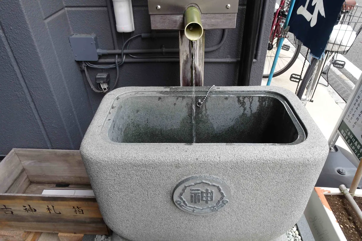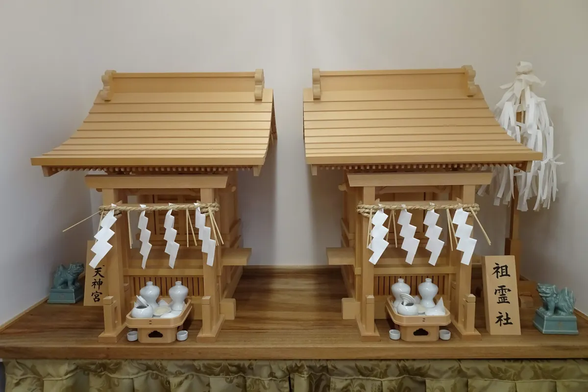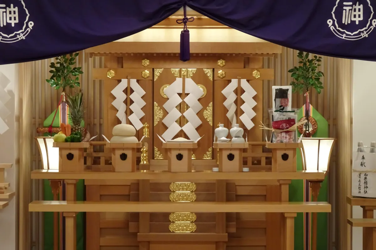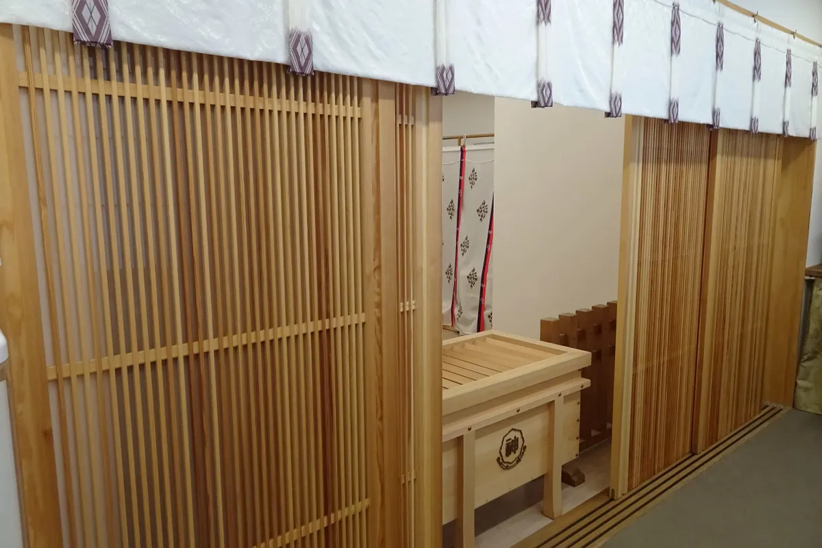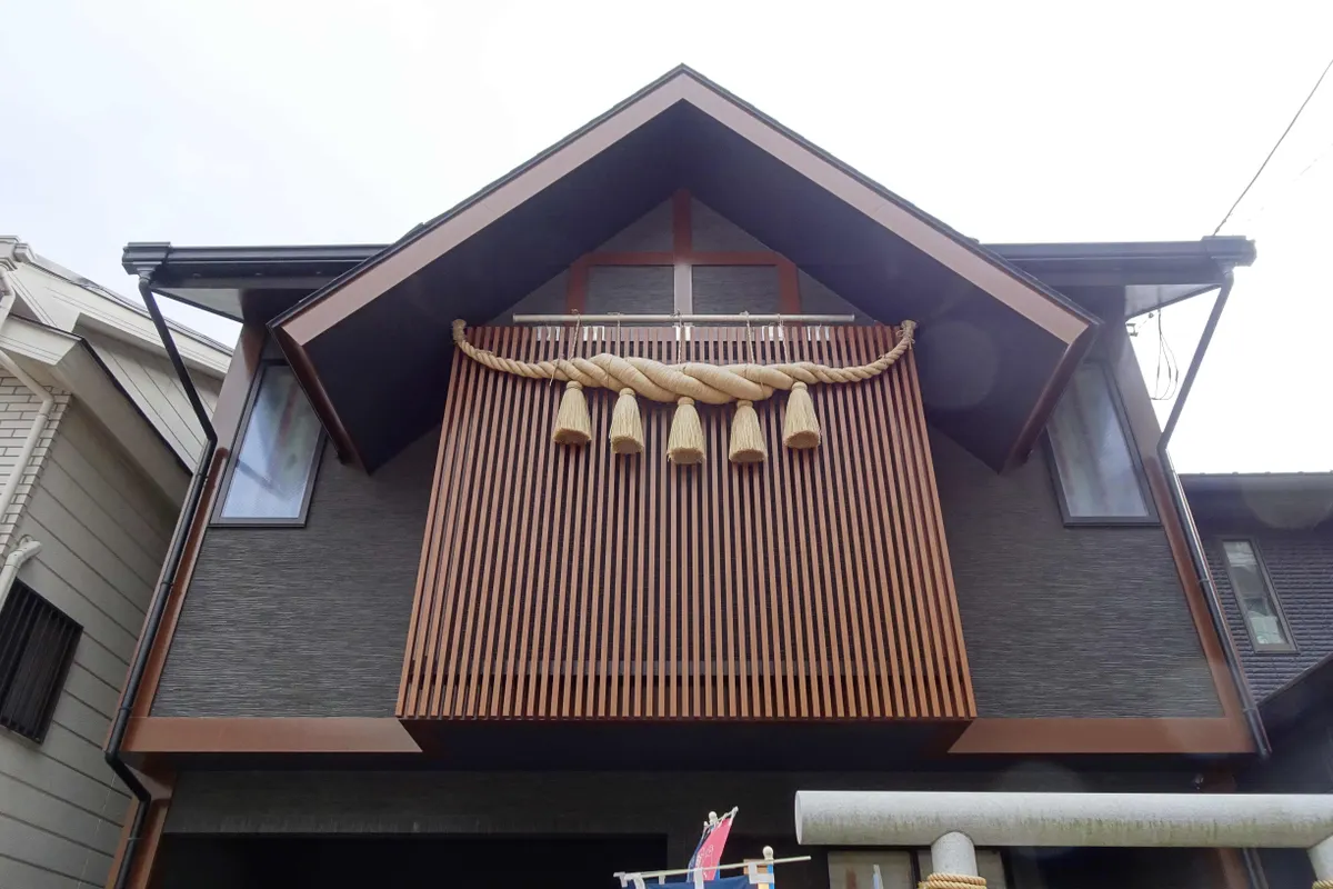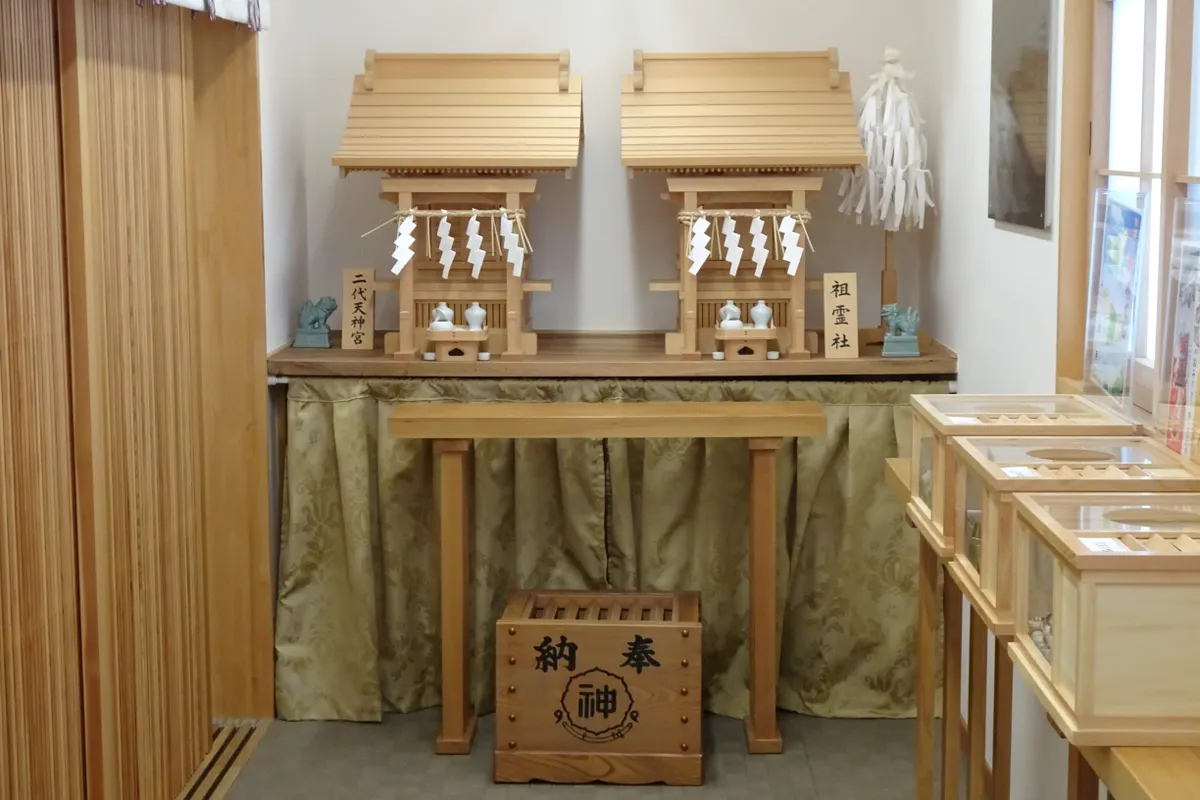 近代的な建物の神社で、鳥居をくぐって建物に入ります。