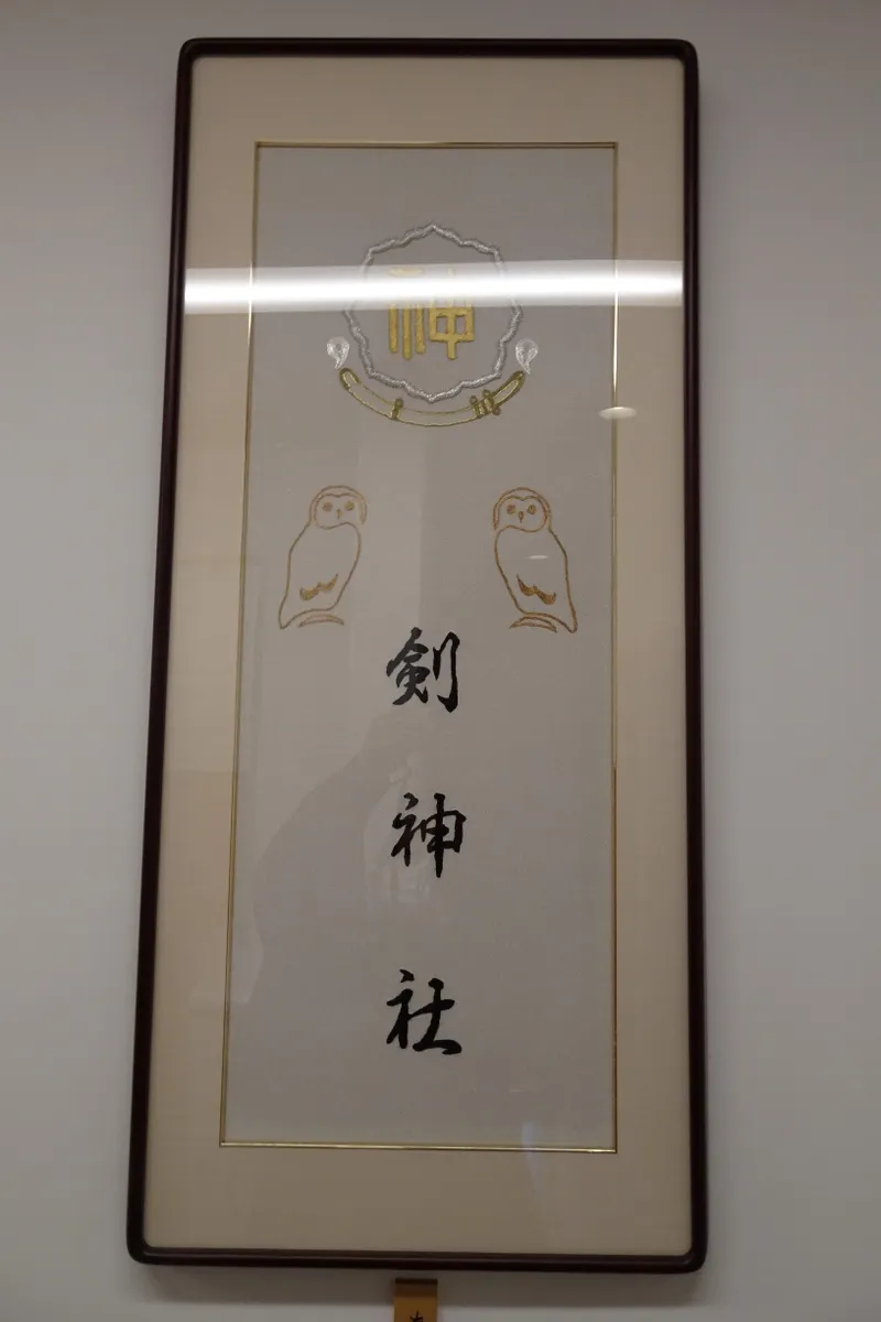 階段を登り切ったところには、額装された神社の紋章がありました。
