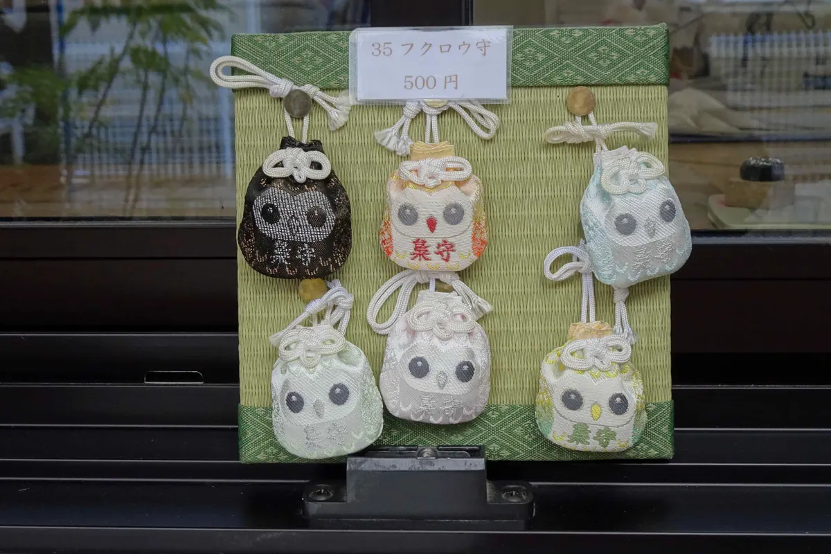 神社の紋章がフクロウだけあって、鳥居奥の社務所ではフクロウのお守りが売っていました。