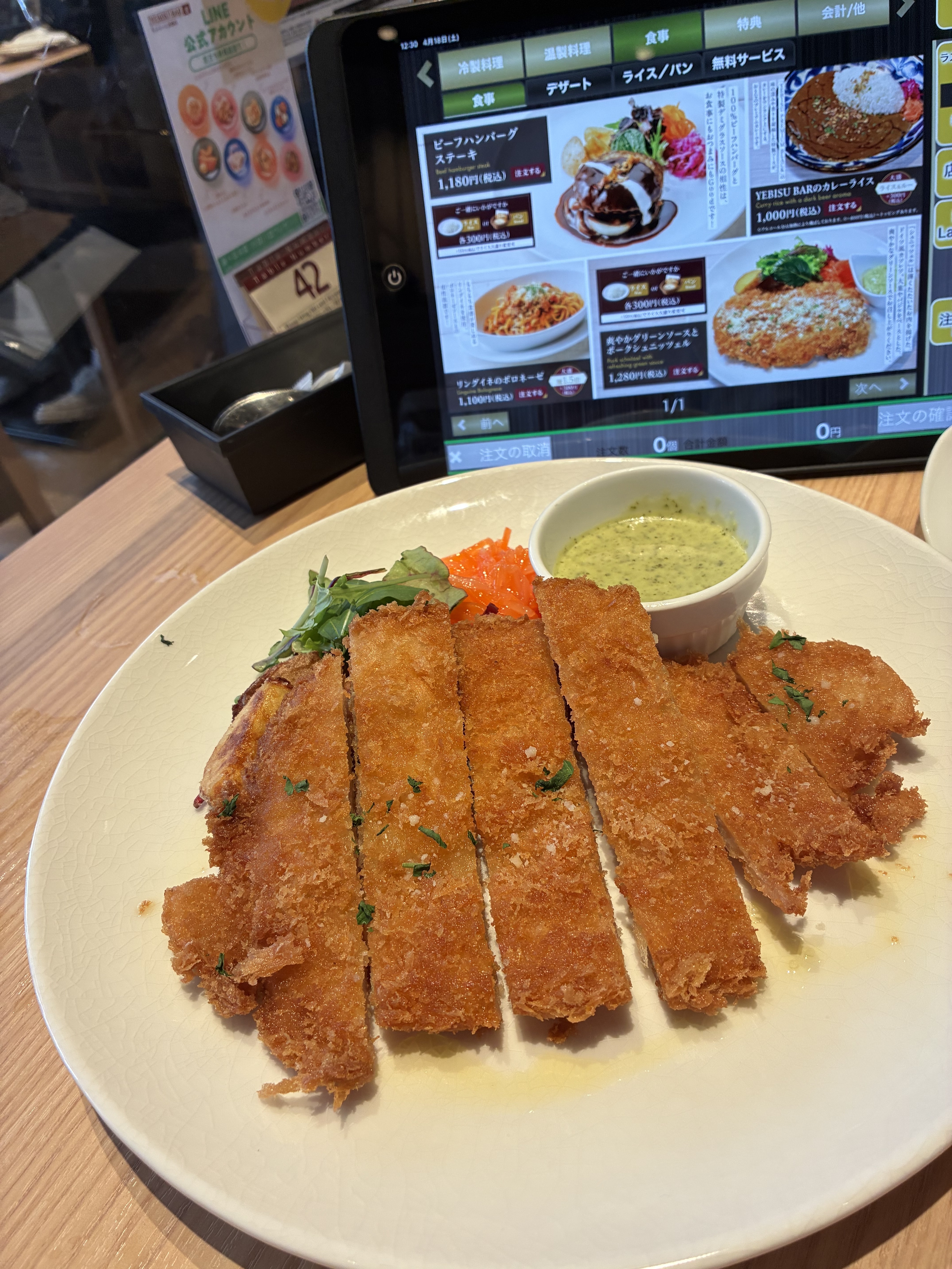 「爽やかグリーンソースとポークシュニッツェル」と「藍想う」