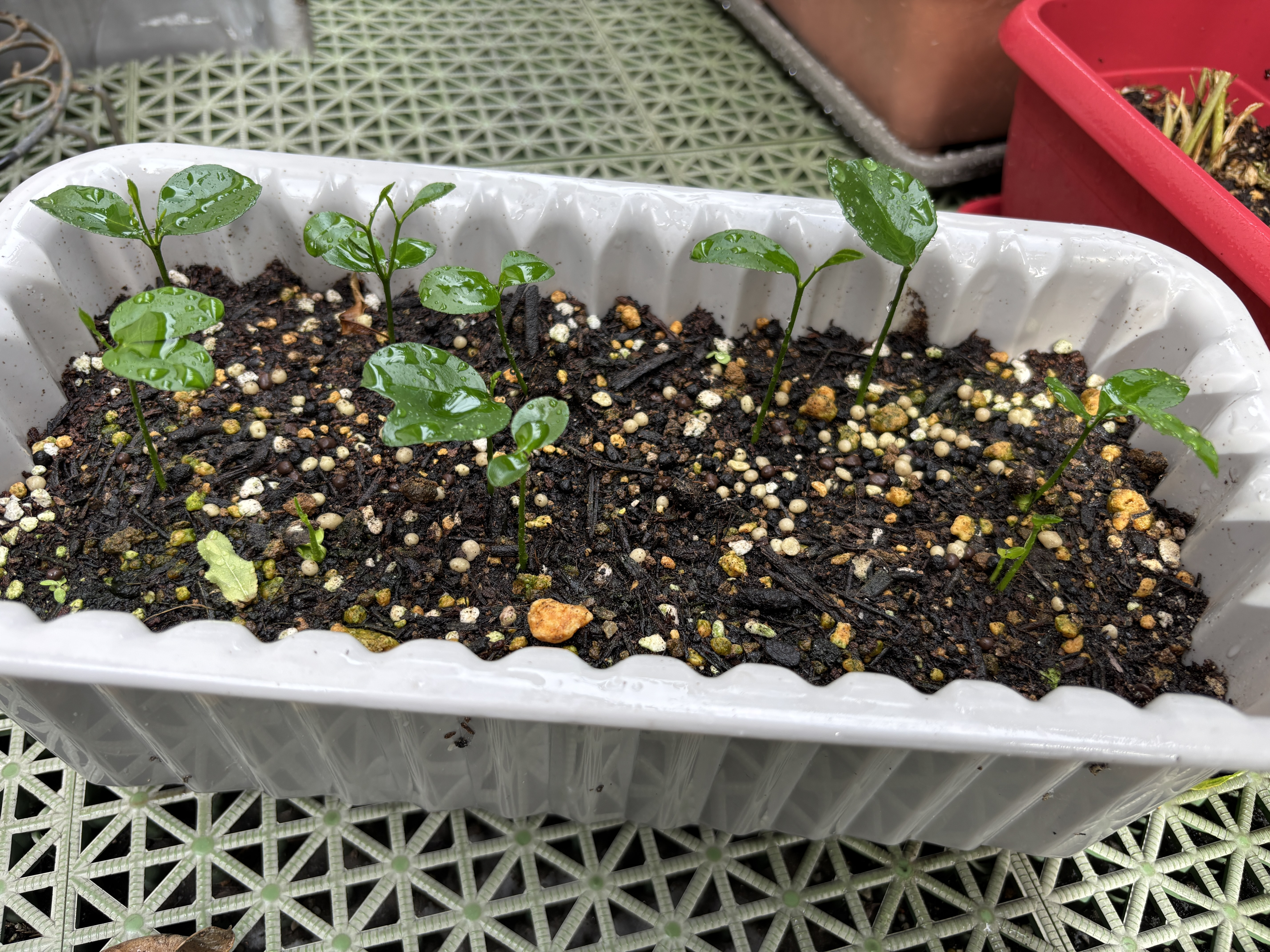 名札を付けて種を植えるのだという反省も虚しく設置を忘れ、なんだか定かではないものの私の記憶が正しければこれは龍眼の芽です。