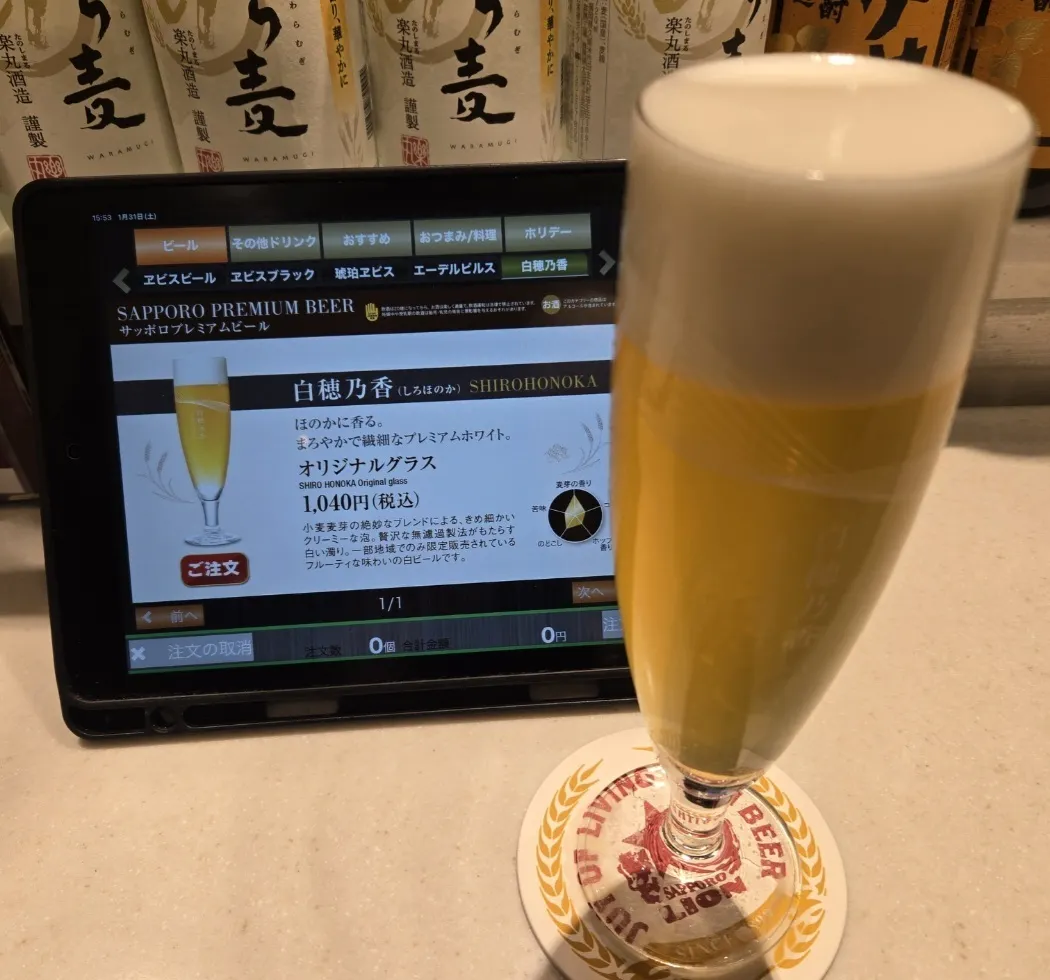 ヱビスフェアチャンスくじは、ちょうどチャンス券を使いきっていたので、ジョッキを飲むつもりはなかったのですが、アテンドしてくれた馴染みのスタッフさんがヱビスジョッキくじ今日までです、とサジェストされるがとりあえずは初志貫徹で無料券にて白穂乃香🍺