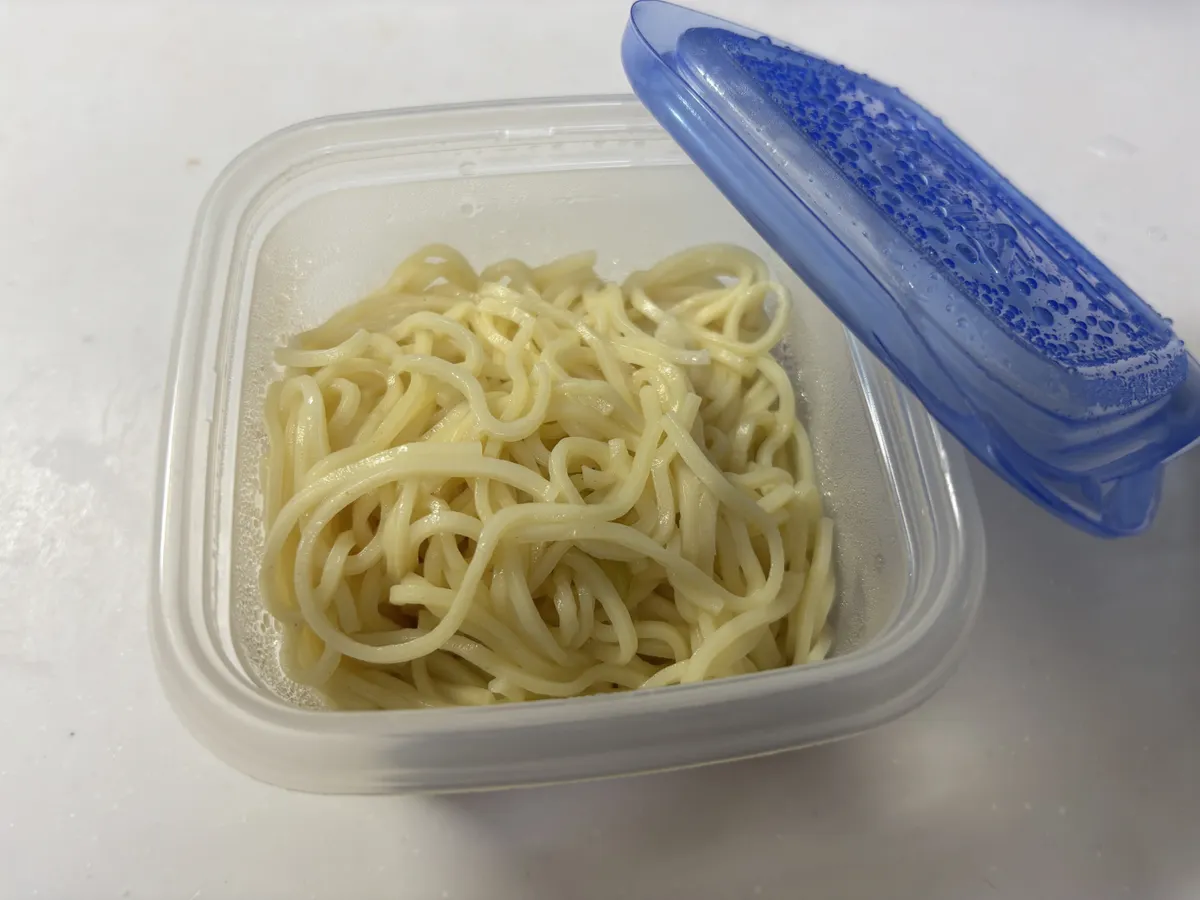 とは言え大概はらぺこ三兄弟の誰かがおかわりペロリで解決なのですが、時には余ることもあるわけで。もう茹でちゃってるしスープにも浸かっているので、残った時点で鍋から引き上げるも、そんな