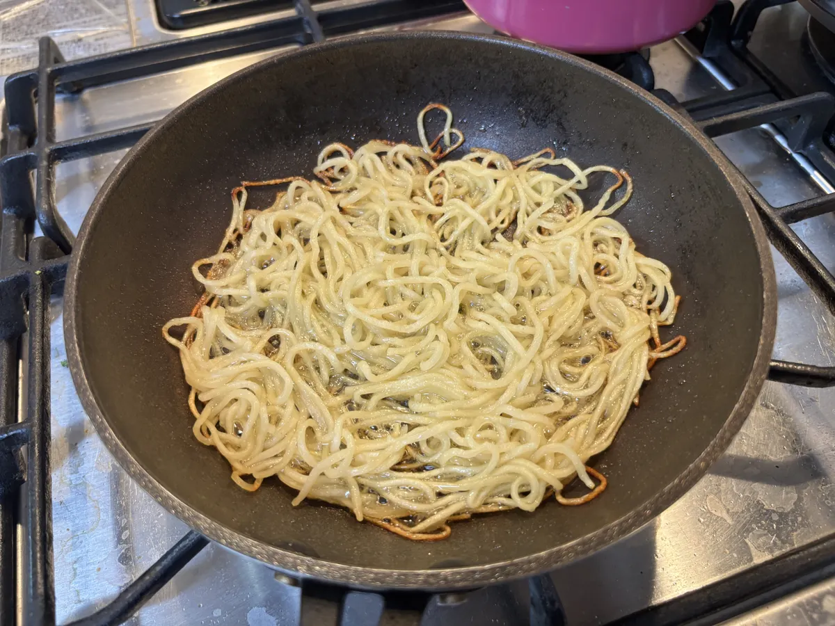 パリパリに焼くラーメン🍜、とっても美味しそうですね