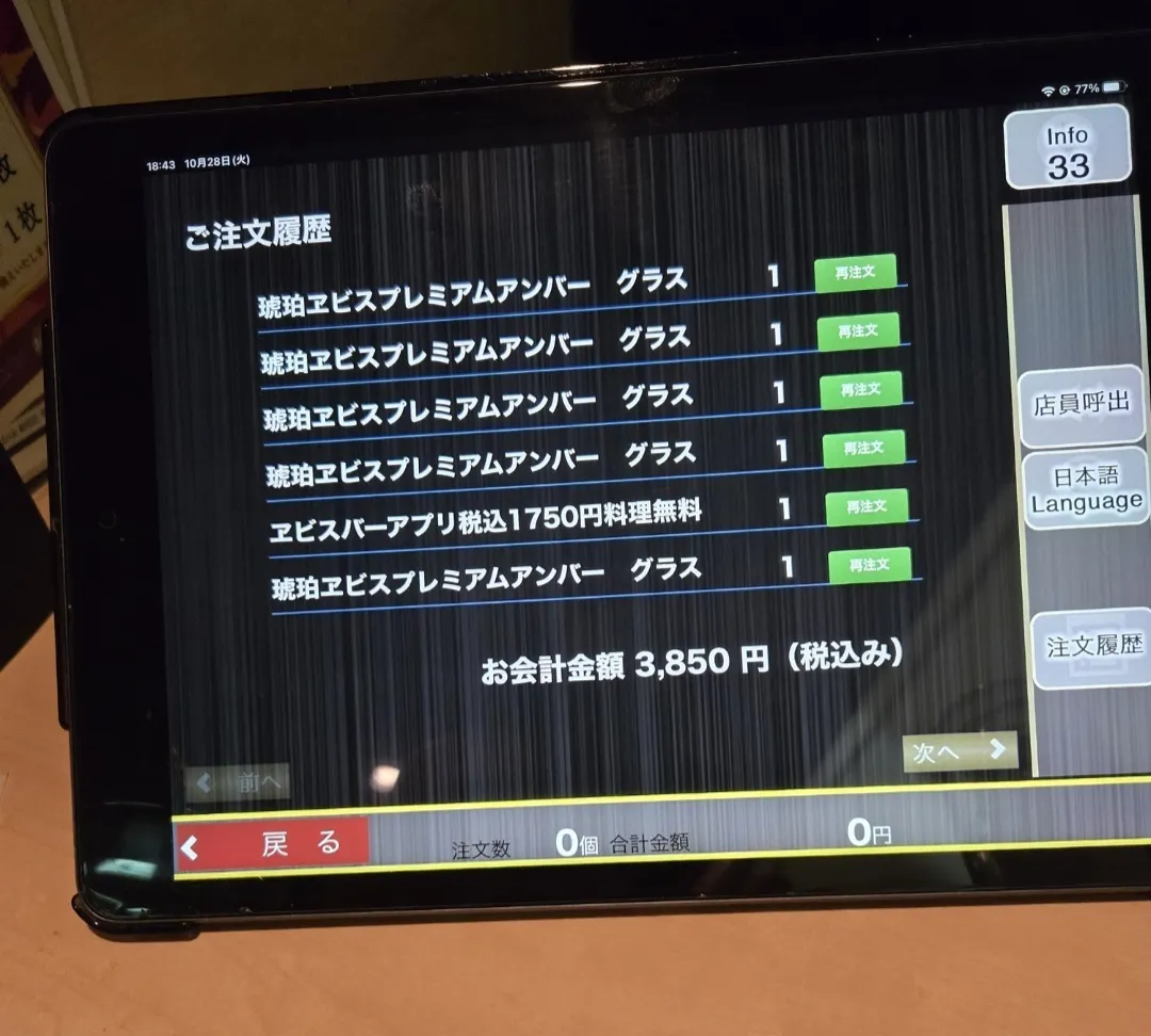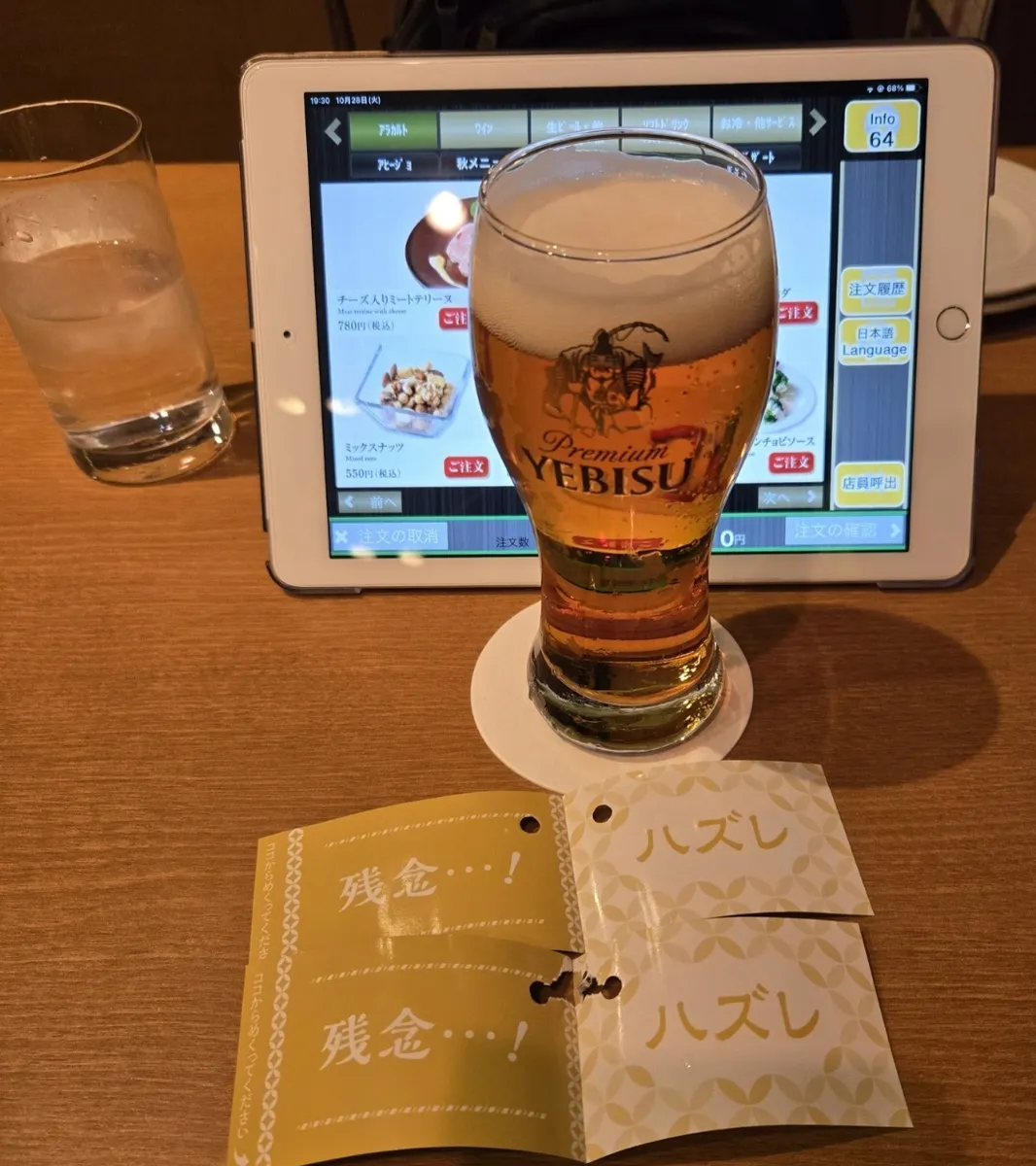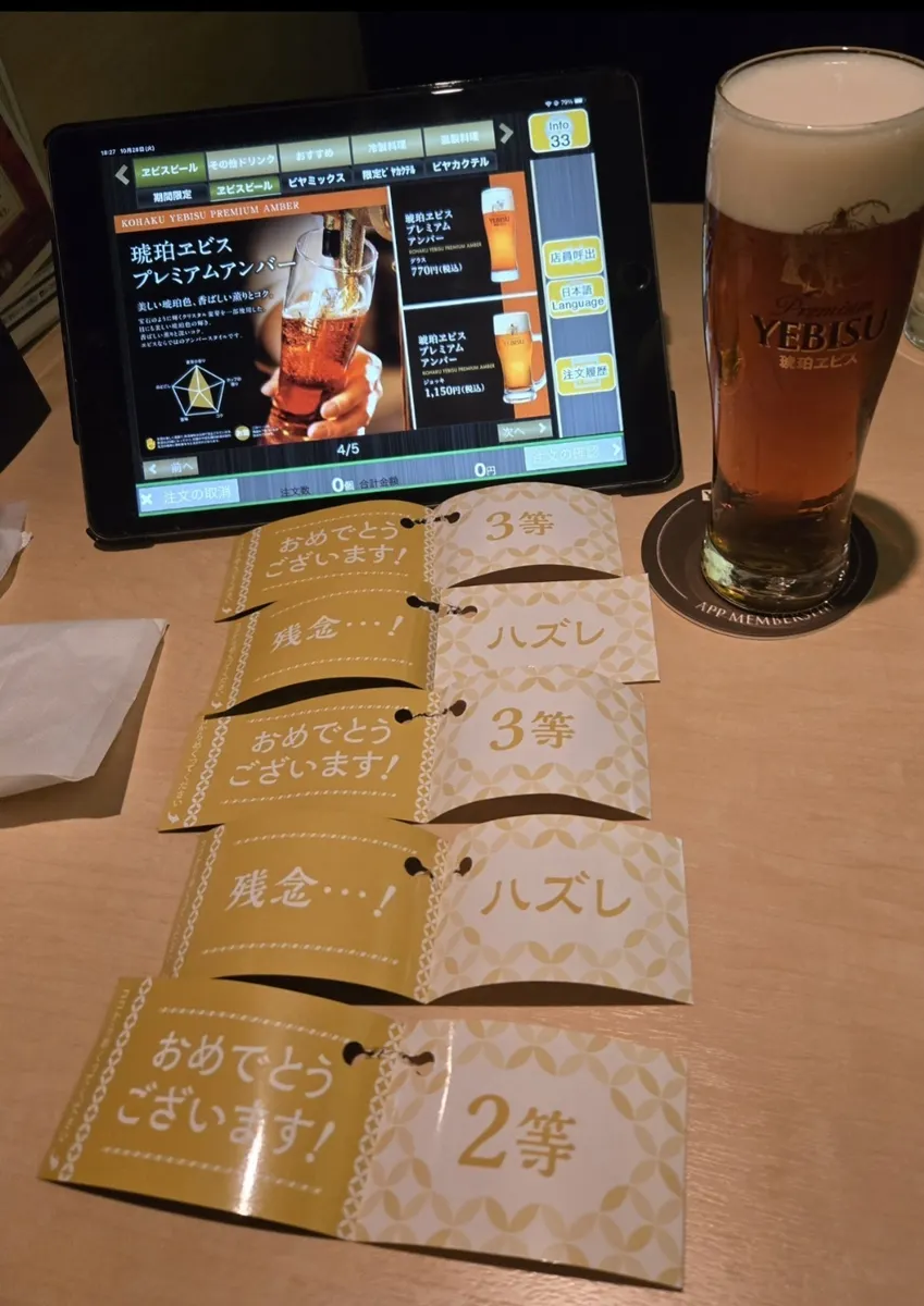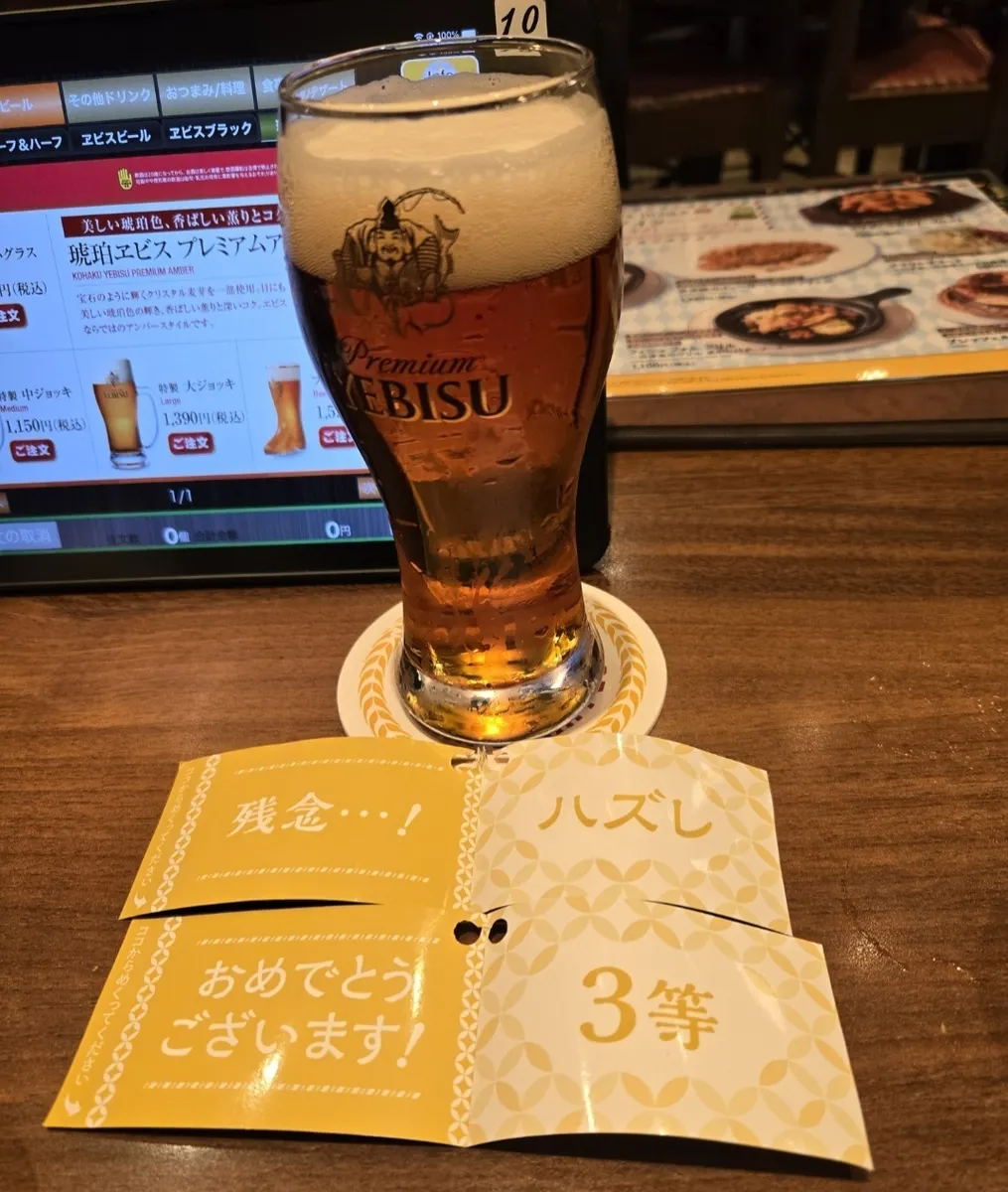 琥珀ヱビス5杯🍺🍺🍺🍺🍺くじは3勝2敗😊