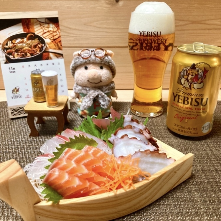私もビール🍺とお刺身セットでとりあえず1つお願い〜🩷😋