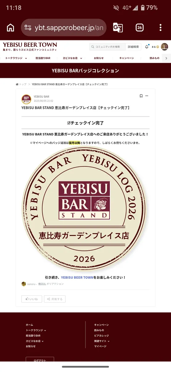 トップ > ヱビスフォト > YEBISU BAR > 関東最初のヱビスバーバッジは まる 2026/02/23 23:24 関東最初のヱビスバーバッジは 関東での 記念すべき第一歩👣 バッジが ちゃんと反映されるかが心配ですが 来月にはバッジが来るのが楽しみ✨ 45個のバッジ集め 自分なりに頑張ります💪 いいね 共有する 共有する X facebook LINE リンクをコピー コメントする 1 件の返信 (新着順) ミュートしたユーザーの投稿です。 投稿を表示 はんまーへっど 2026/02/24 06:35 YEBISUテイクアウトあるんですね⤴️⤴️ いいね 返信する ミュートしたユーザーの投稿です。 投稿を表示 まる 2026/02/24 08:21 はんまーへっどさん おはようございます。 テイクアウトがあって 嬉しいです😄⤴️⤴️ 今年は行ってませんが 去年は調布のお店でも テイクアウトをしましたよ〜🍺 お店巡りでとても助かりました🙆 関西でもなんばでやってましたよ〜🍺 気軽で嬉しいですね〜😄 いいね 返信する