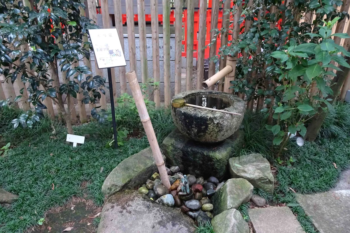 こちらは水琴窟で、柄杓で水を小石のところに流すと、音が鳴ります。